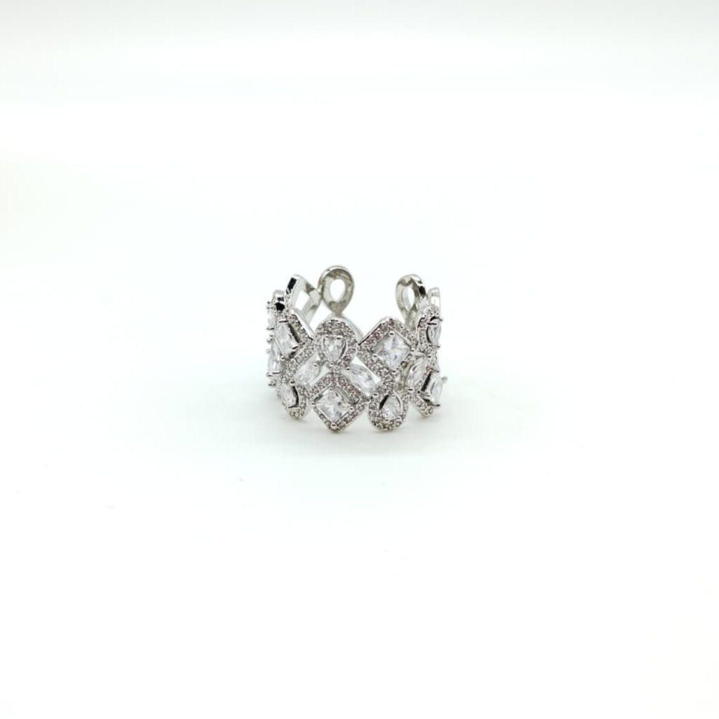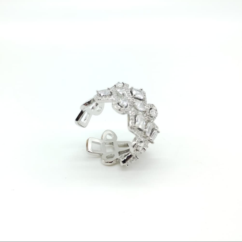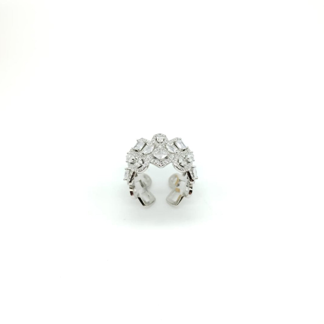 Anello regolabile con zirconi color crystal e rodiatura in argento