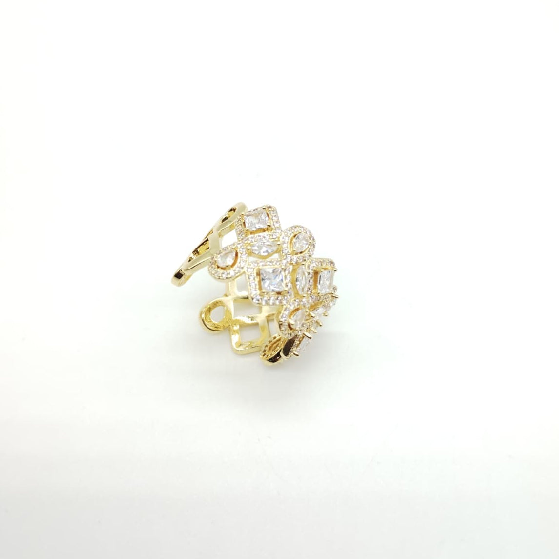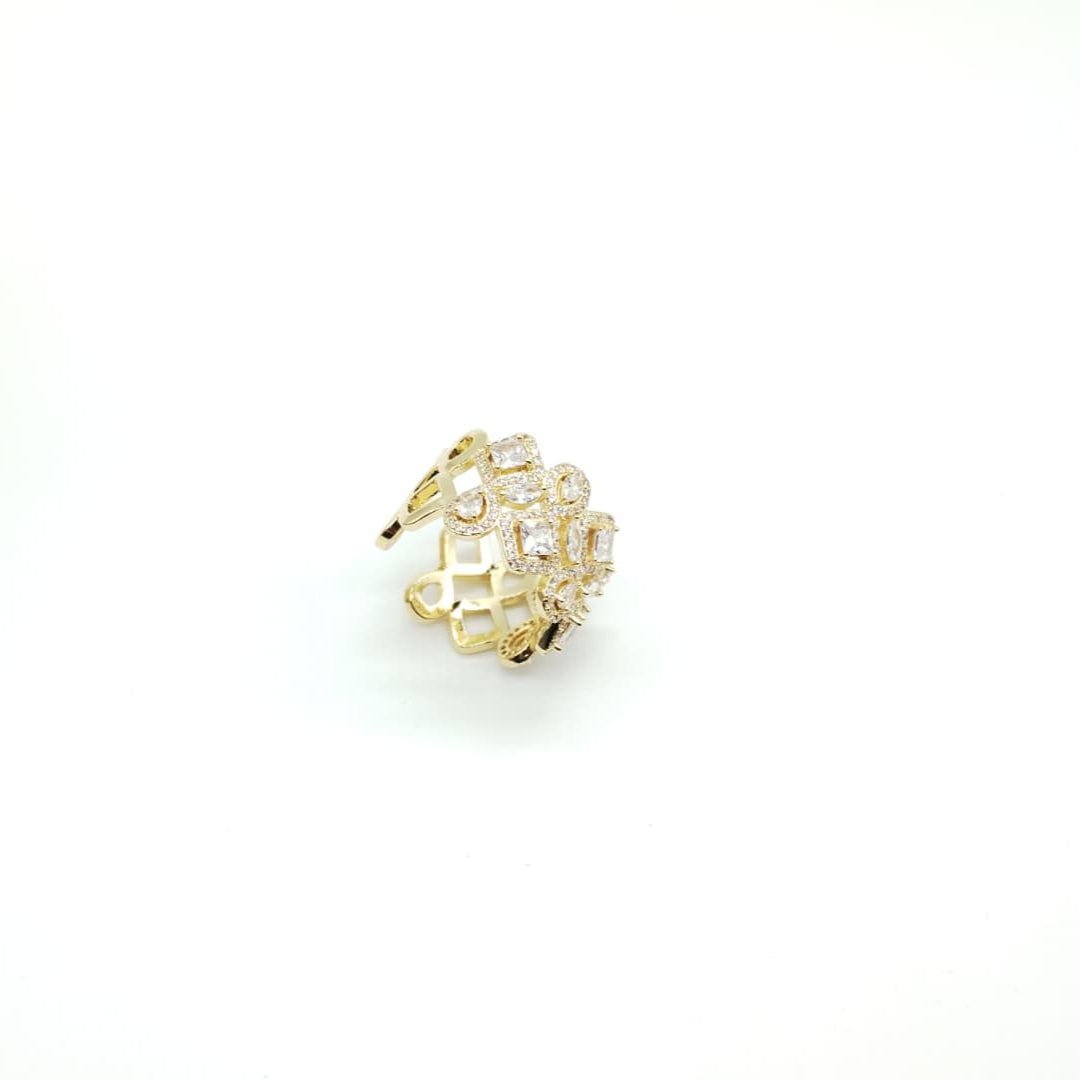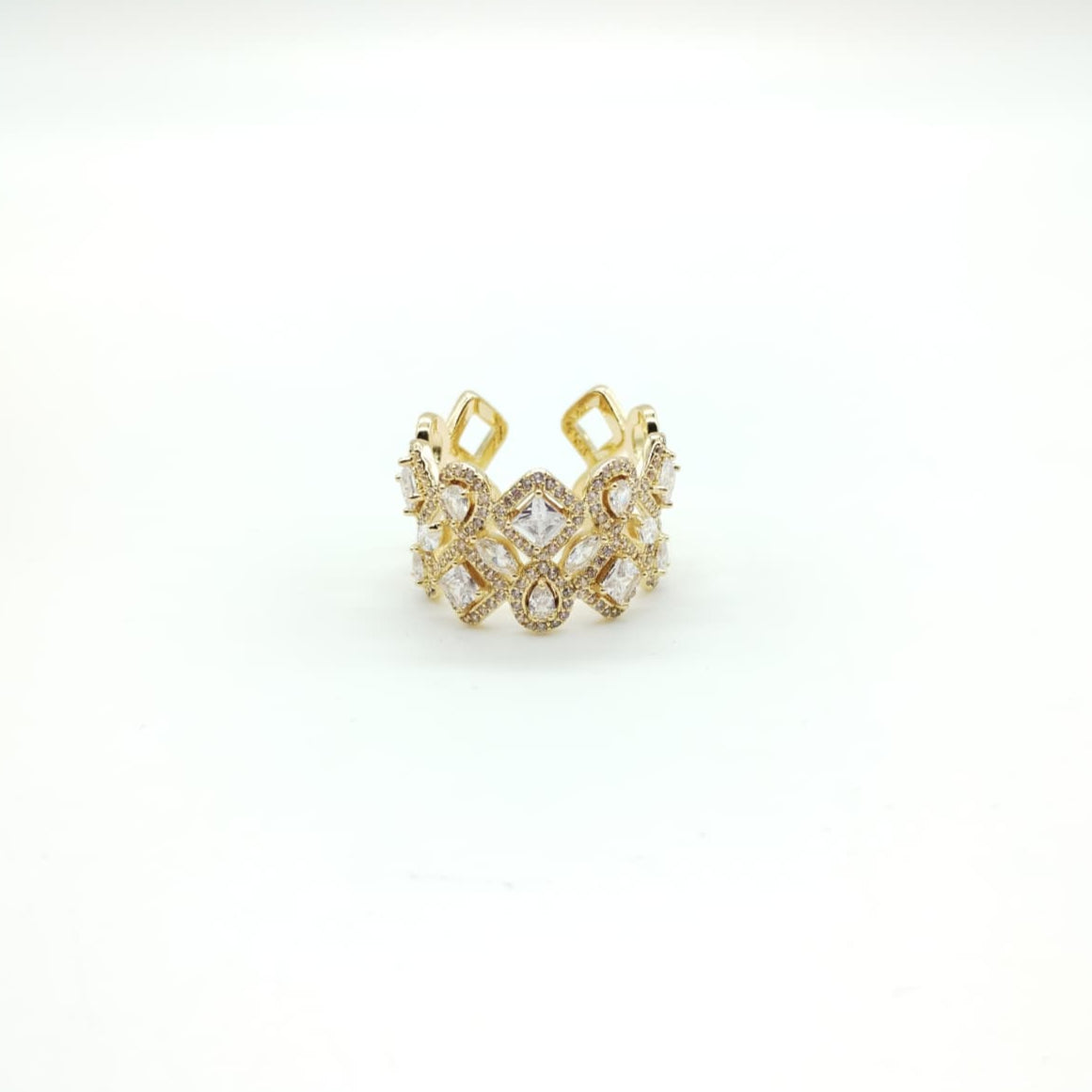 Anello regolabile con zirconi color crystal e rodiatura in oro