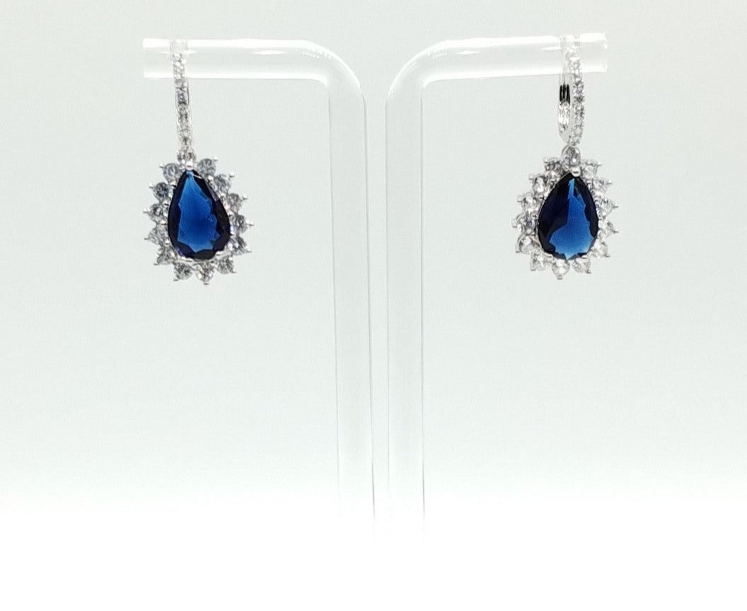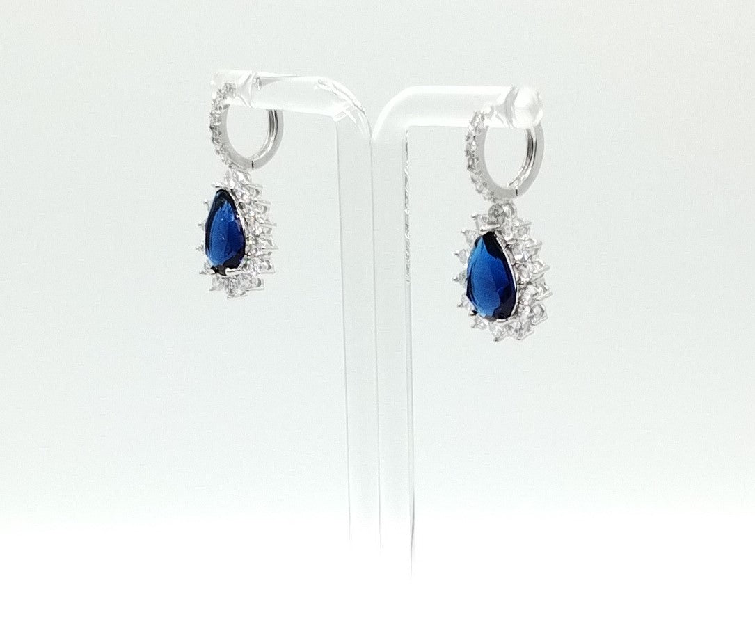 Orecchini di zirconi crystal con pietra blu e rodiatura in argento