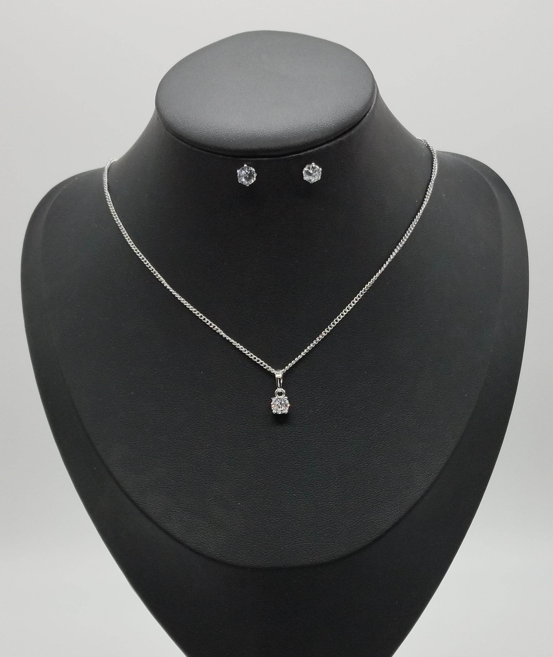 Parure di zirconi color crystal composta da collana e orecchini con rodiatura in argento