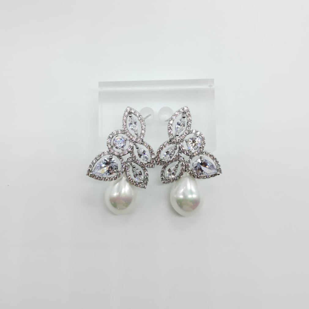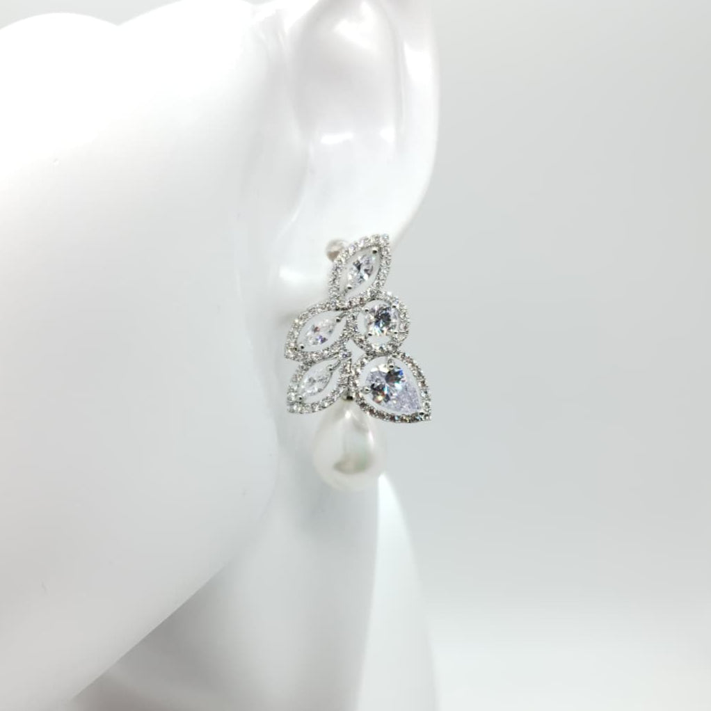 Orecchini di zirconi crystal con rodiatura in argento e pendente perla