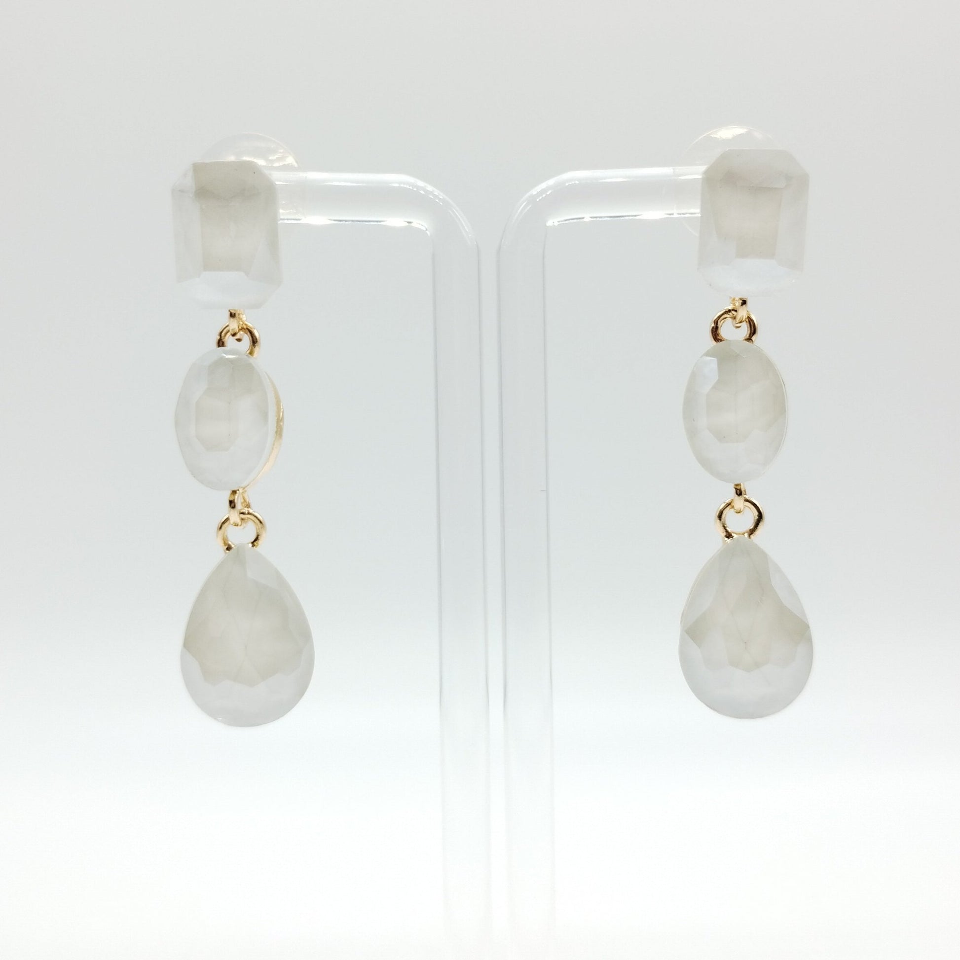 Orecchini pendenti con stass color bianco perla con rodiatura oro