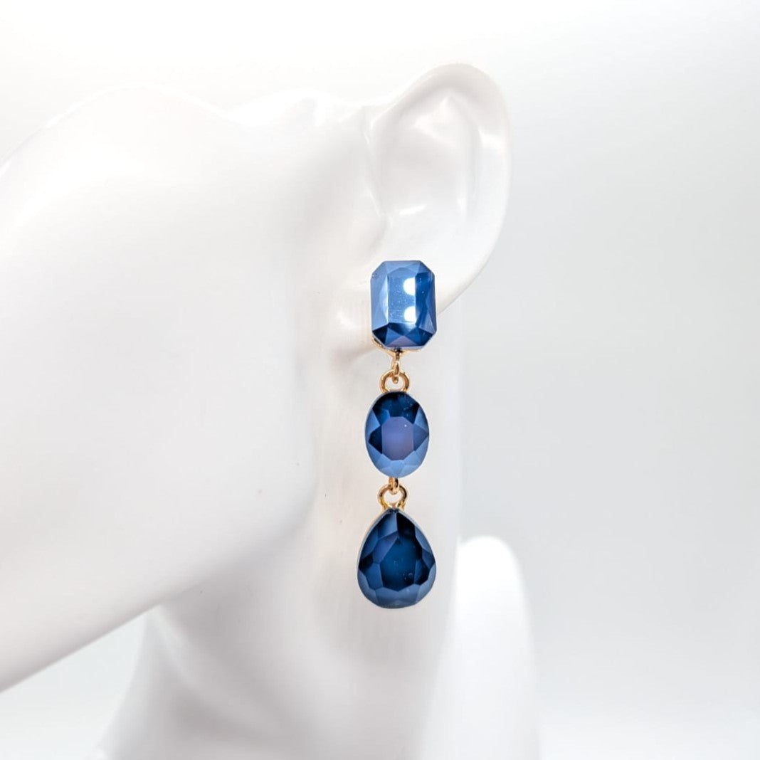 Orecchini pendenti con stass color blu con rodiatura oro