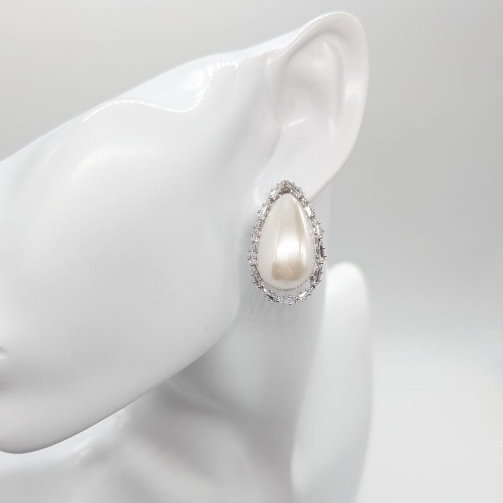 Orecchini di zirconi crystal con pendente goccia perla e rodiatura argento