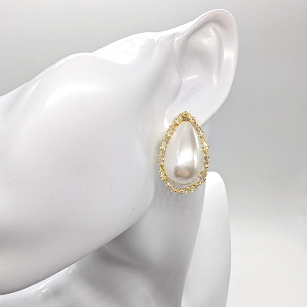 Orecchini di zirconi crystal con pendente goccia perla e rodiatura oro