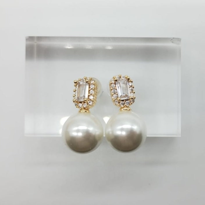 Orecchini di zirconi crystal e perle con rodiatura oro