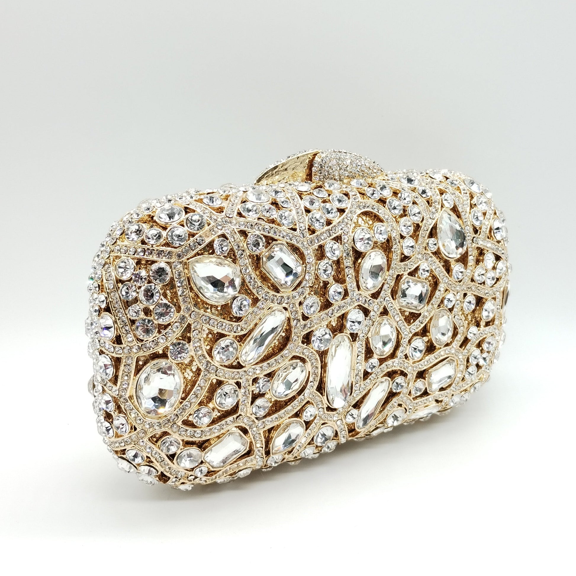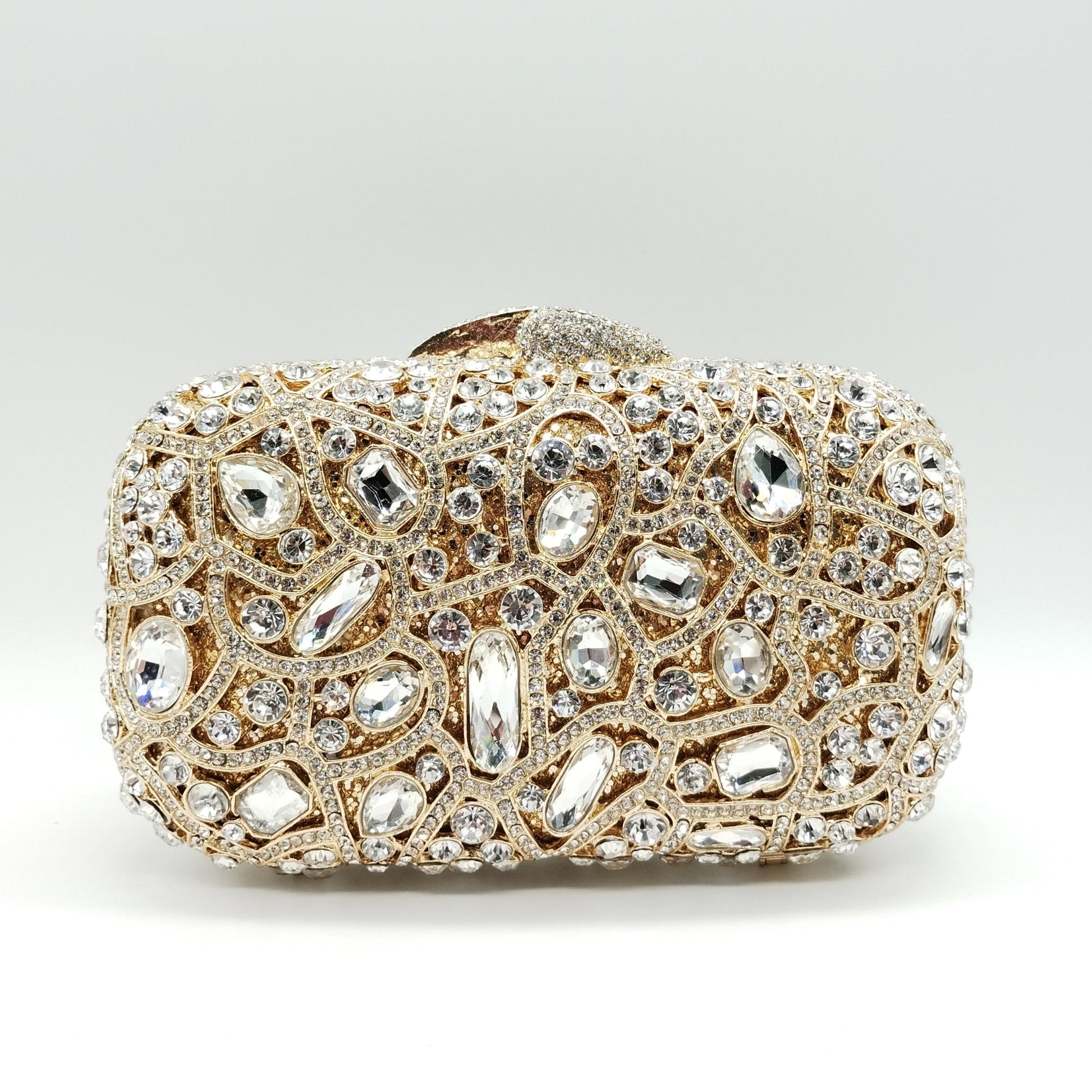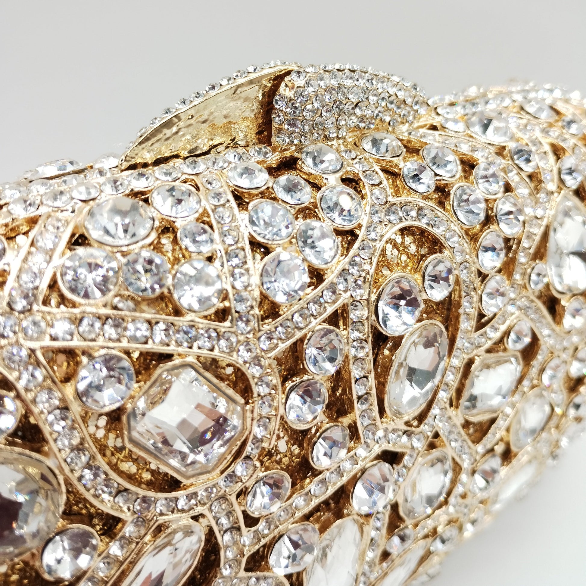 Borsetta gioiello color oro con cristalli crystal e tracolla interna removibile.