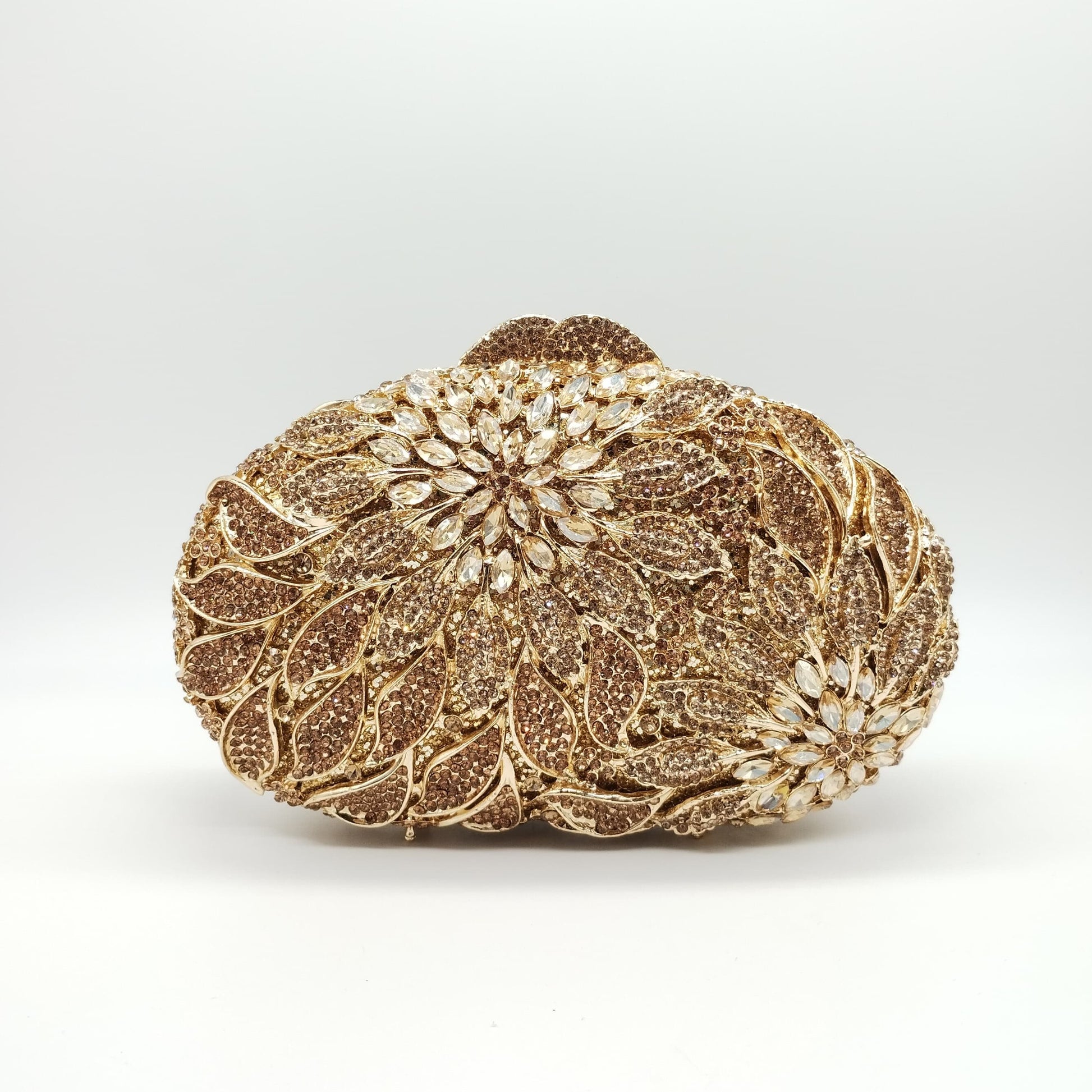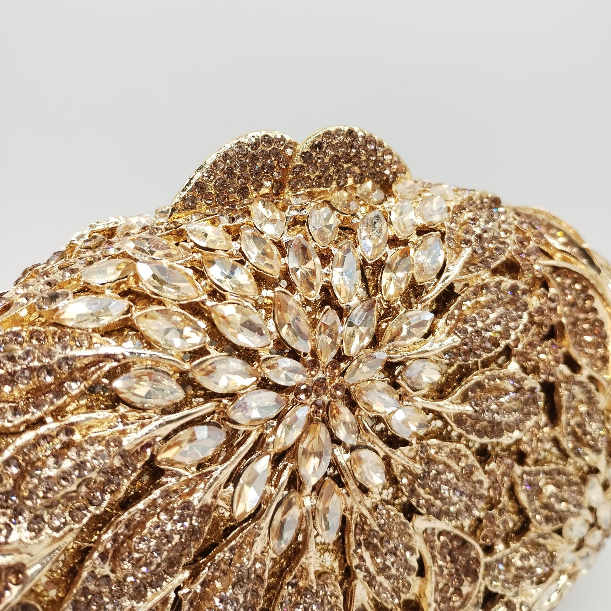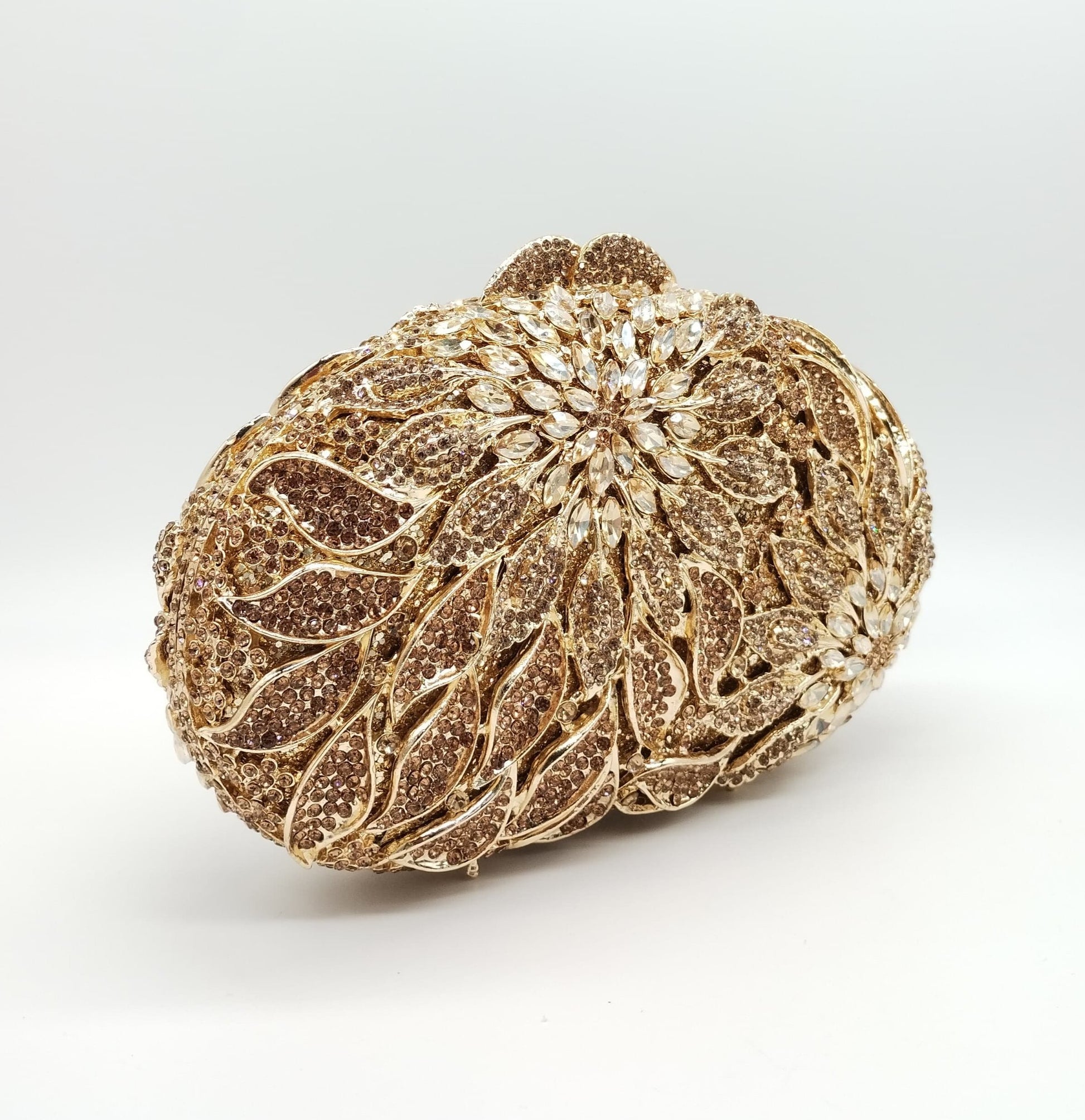 Borsetta gioiello color oro con zirconi crystal e oro e tracolla interna removibile.