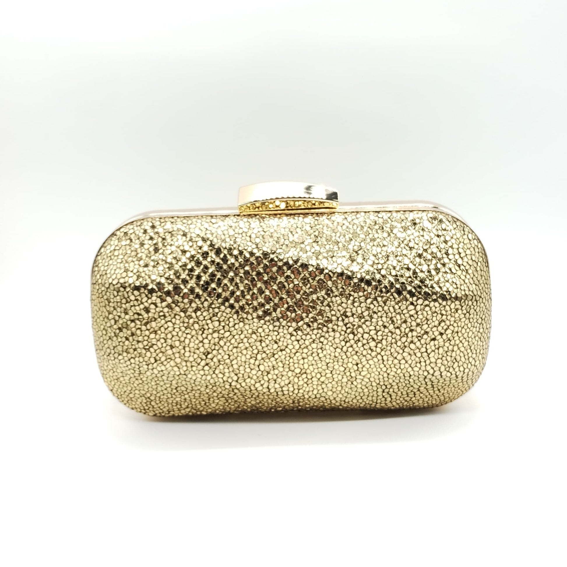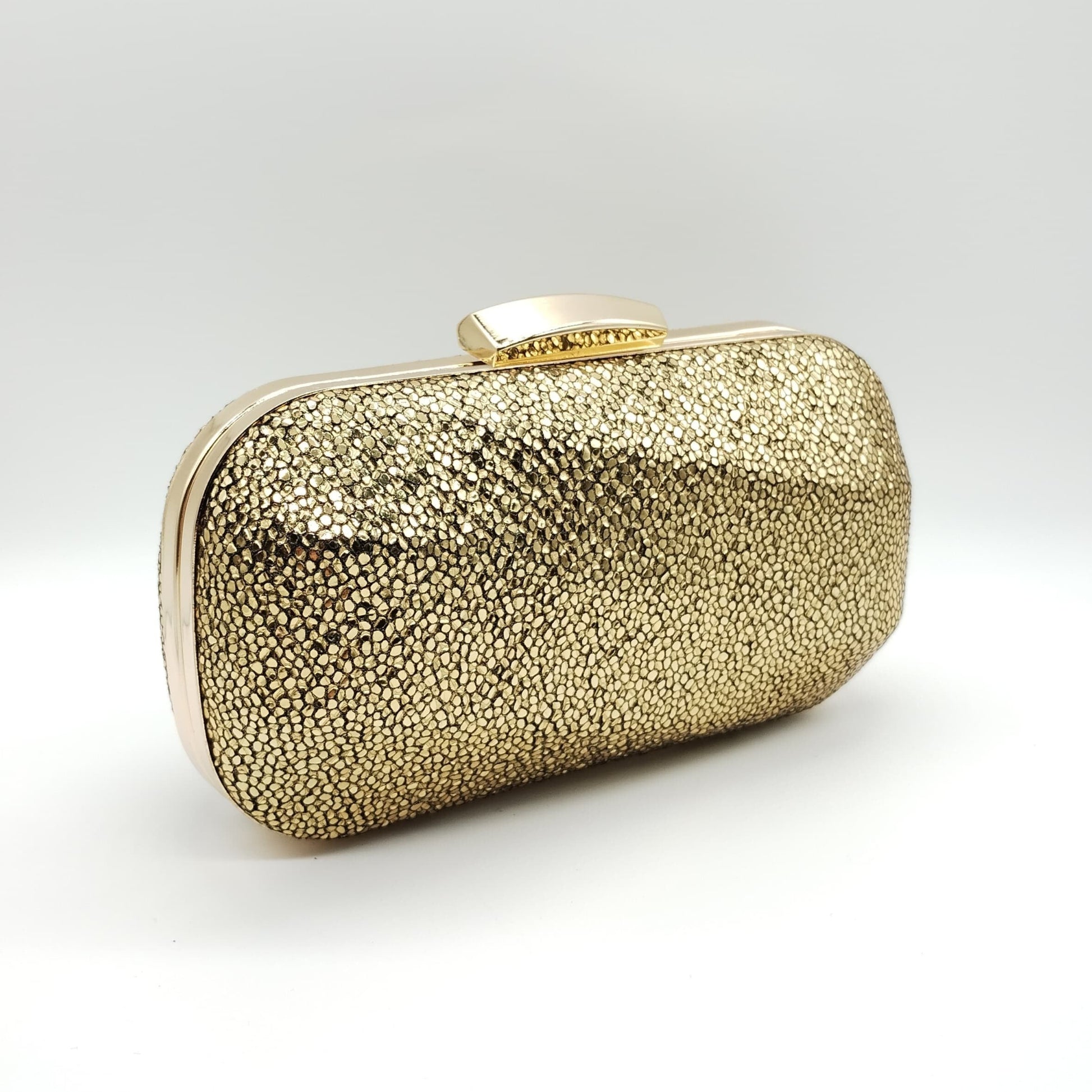 Borsetta da cerimonia rigida in tessuto color oro e tracolla interna e removibile