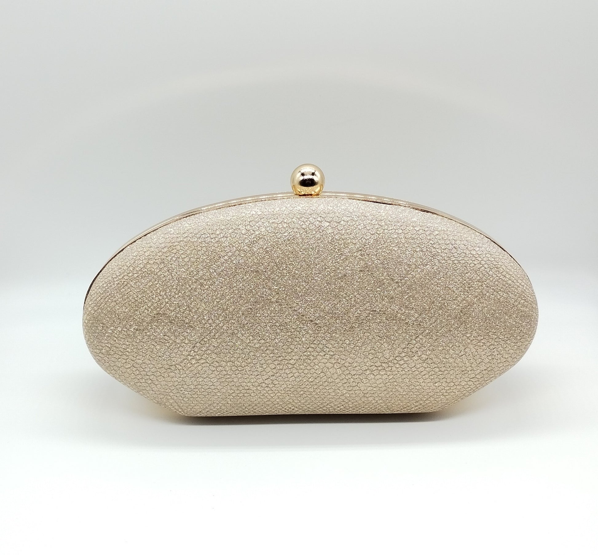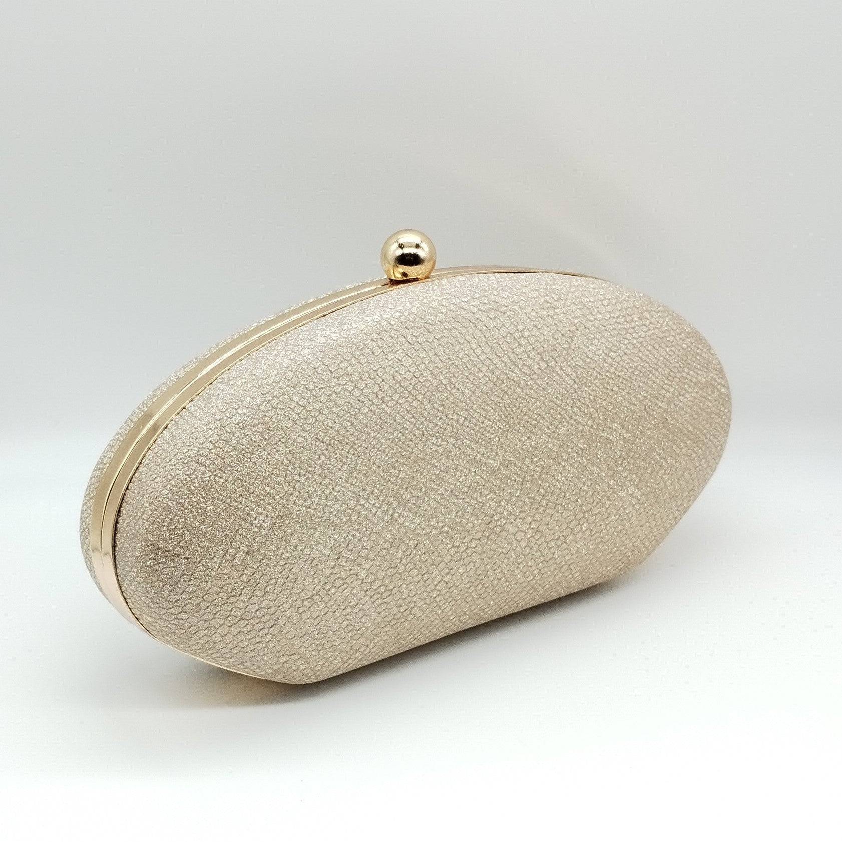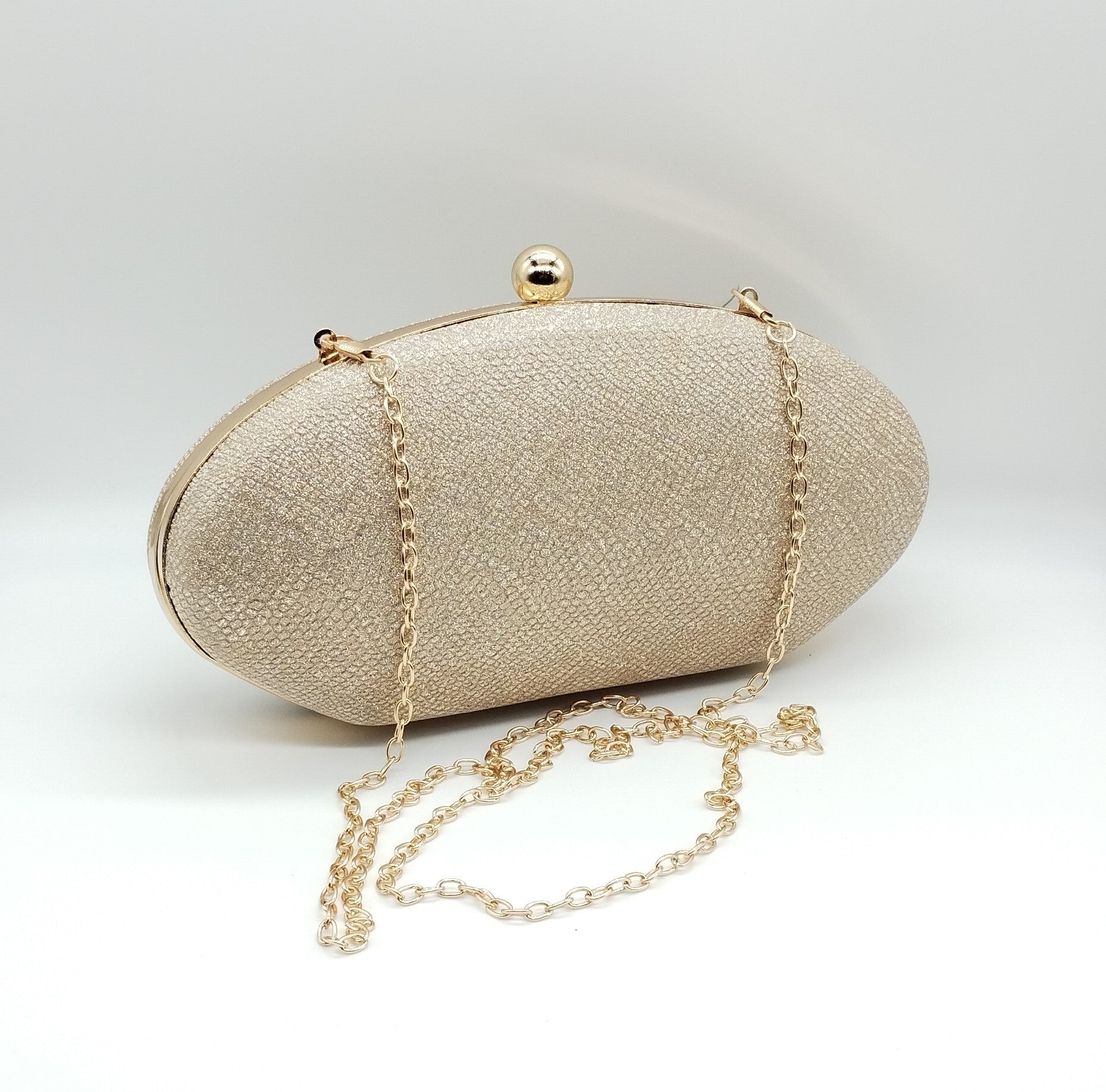 Borsetta da cerimonia rigida in tessuto brillante color oro con tracolla interna removibile
