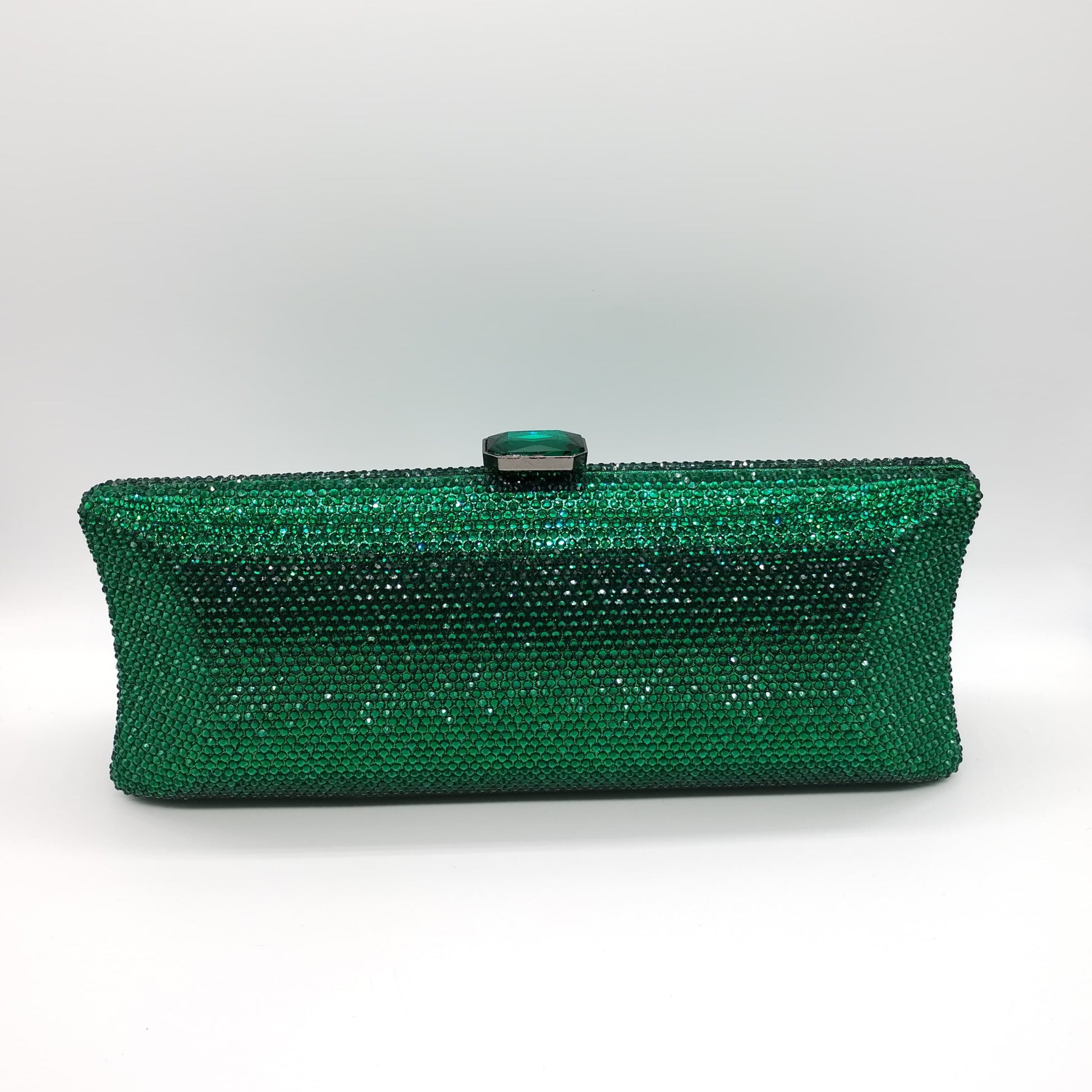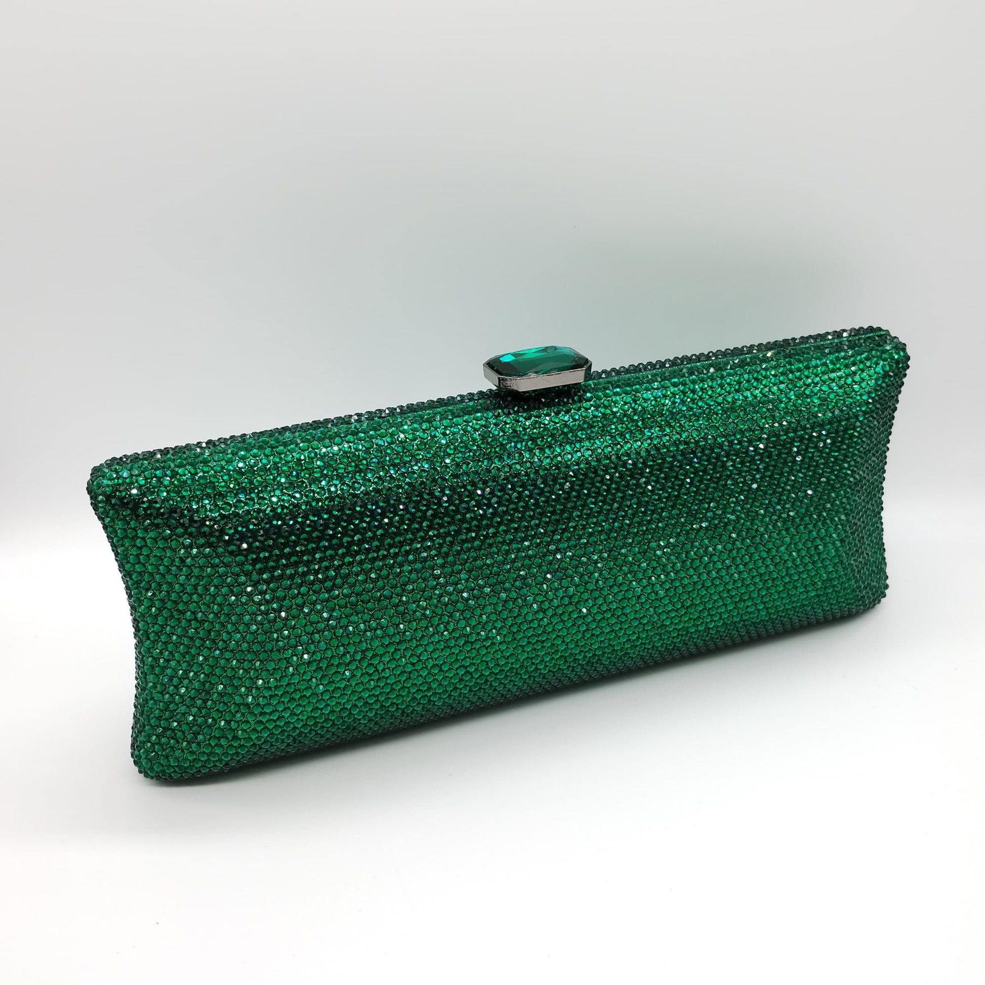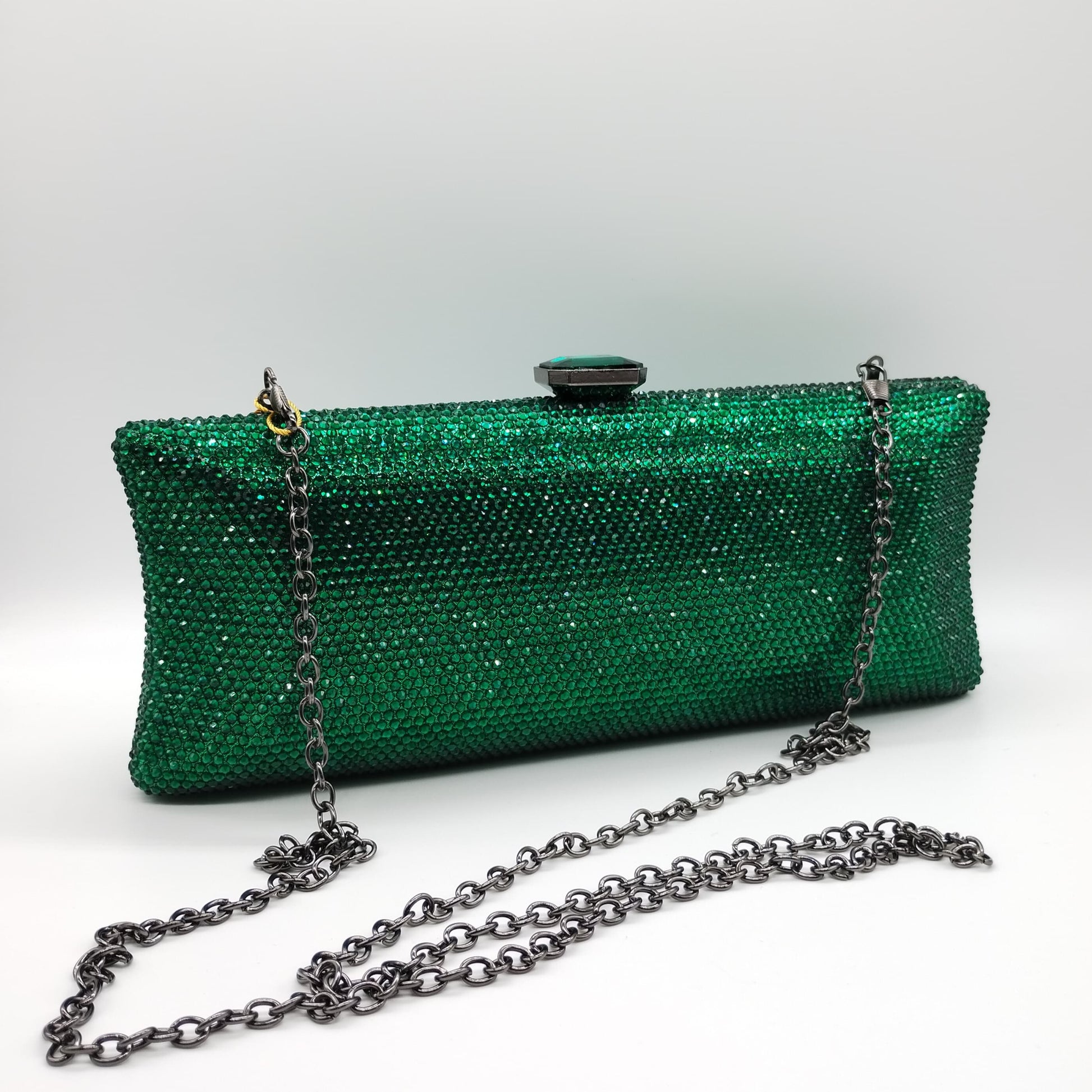 Borsetta da cerimonia rigida con strass color verde e tracolla interna removibile.
