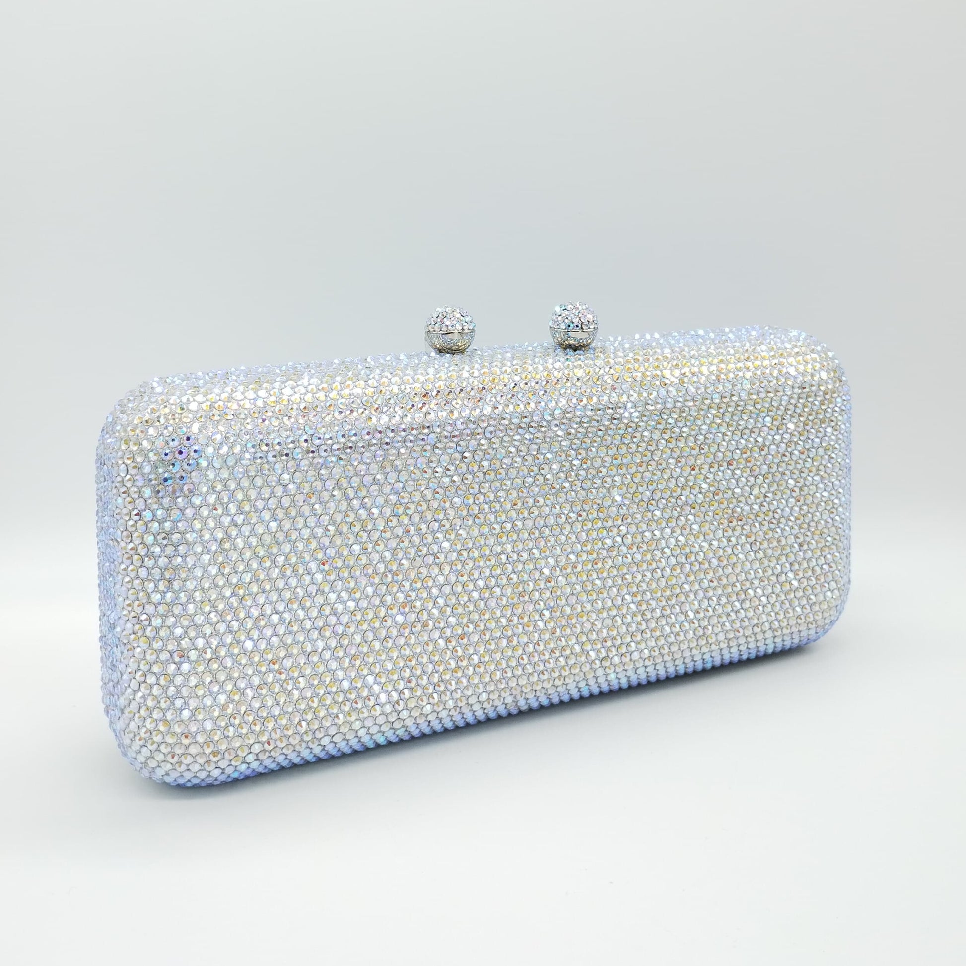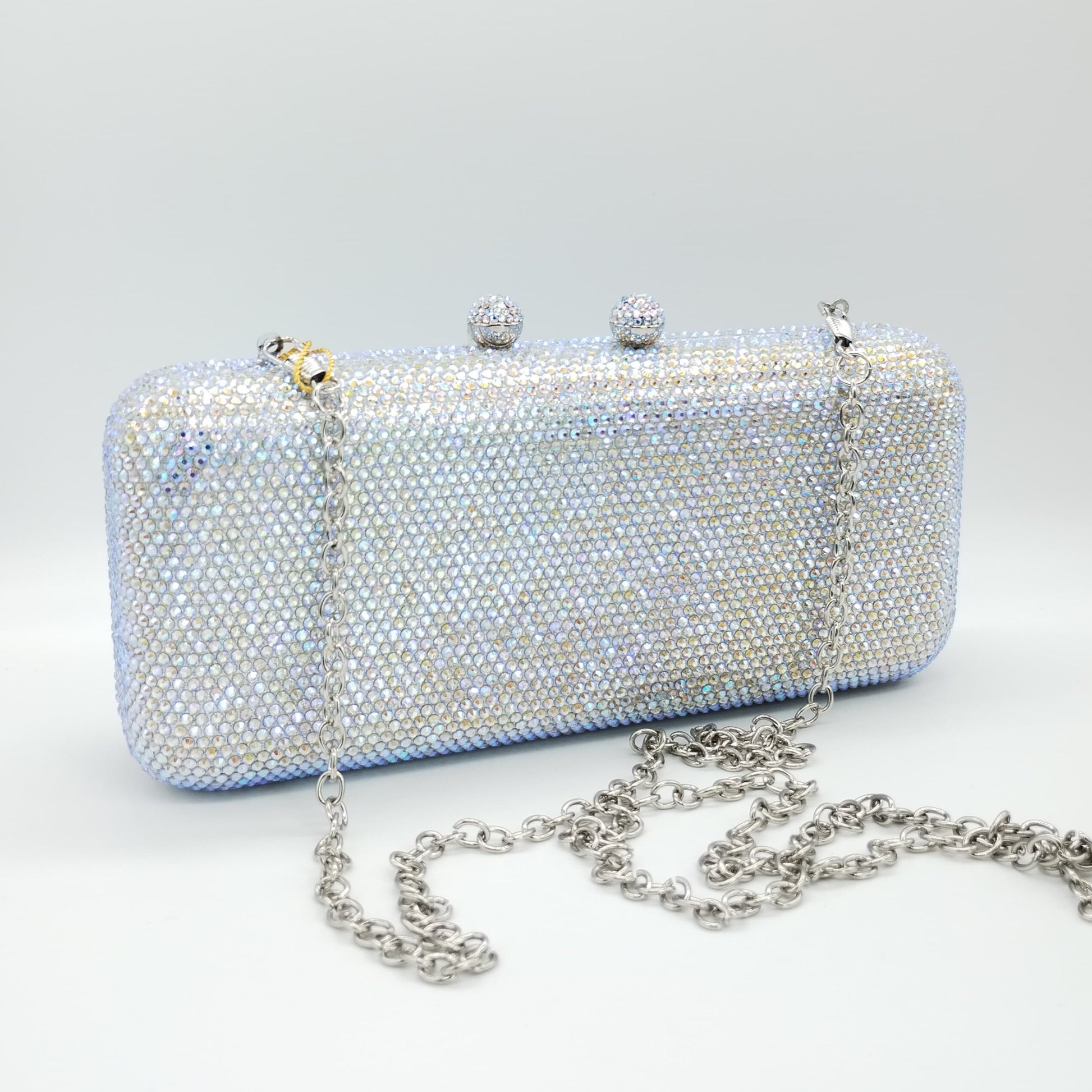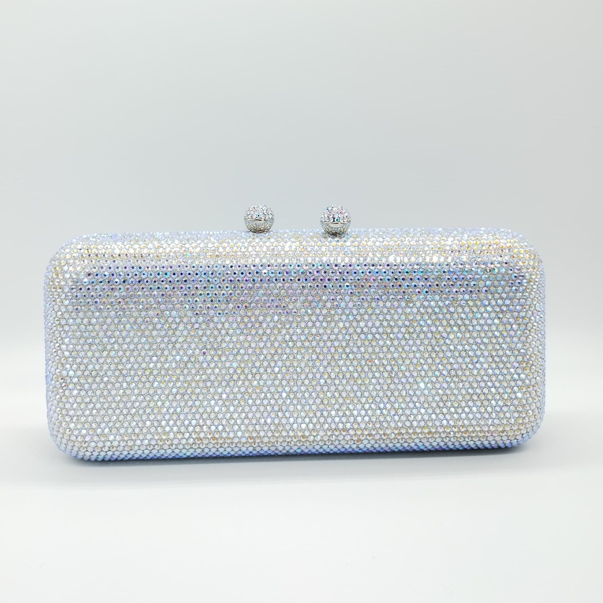 Borsetta da cerimonia rigida in strass color boreale e tracolla interna removibile.