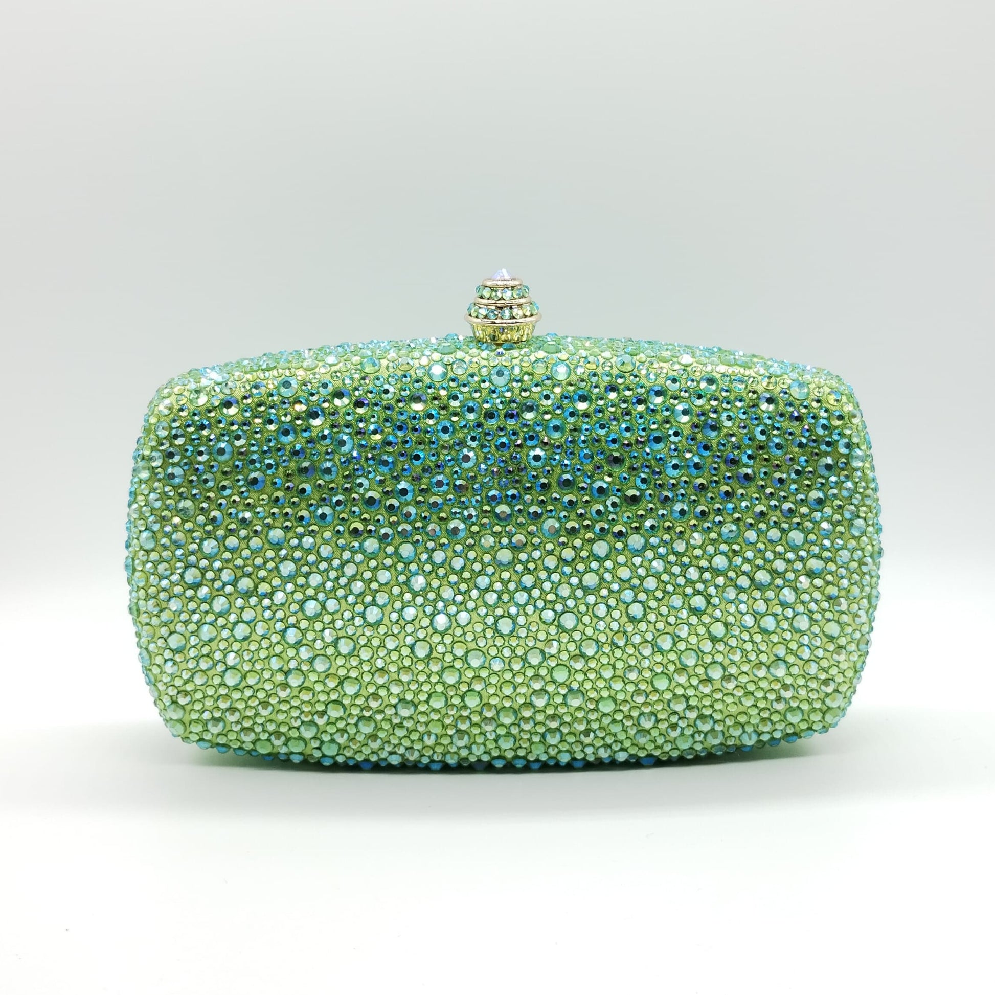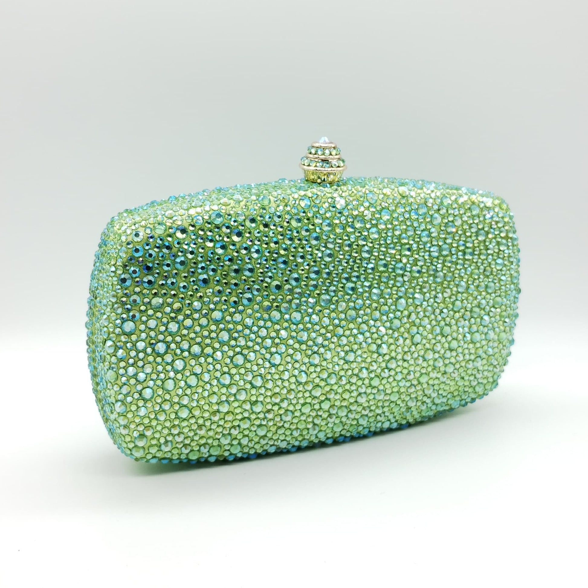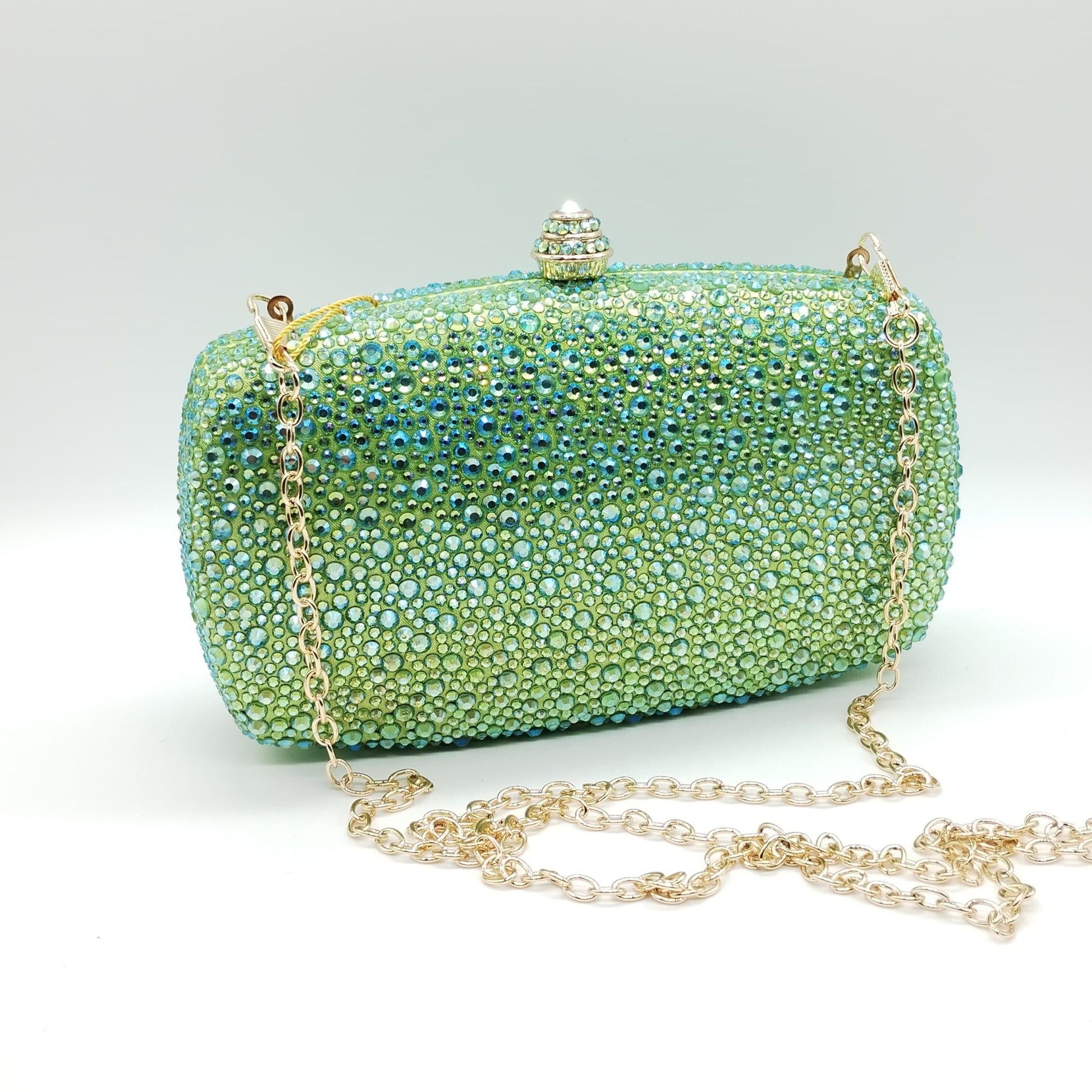 Borsetta da cerimonia rigida con strass color verde lime e tracolla interna removibile.