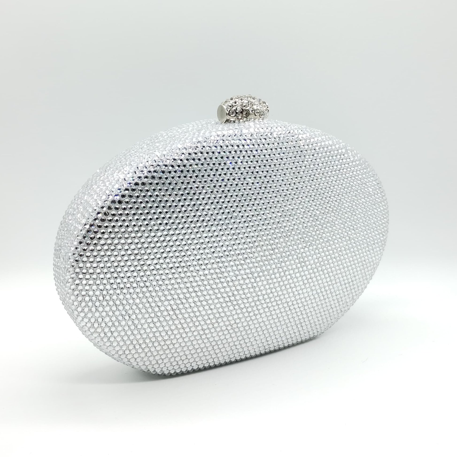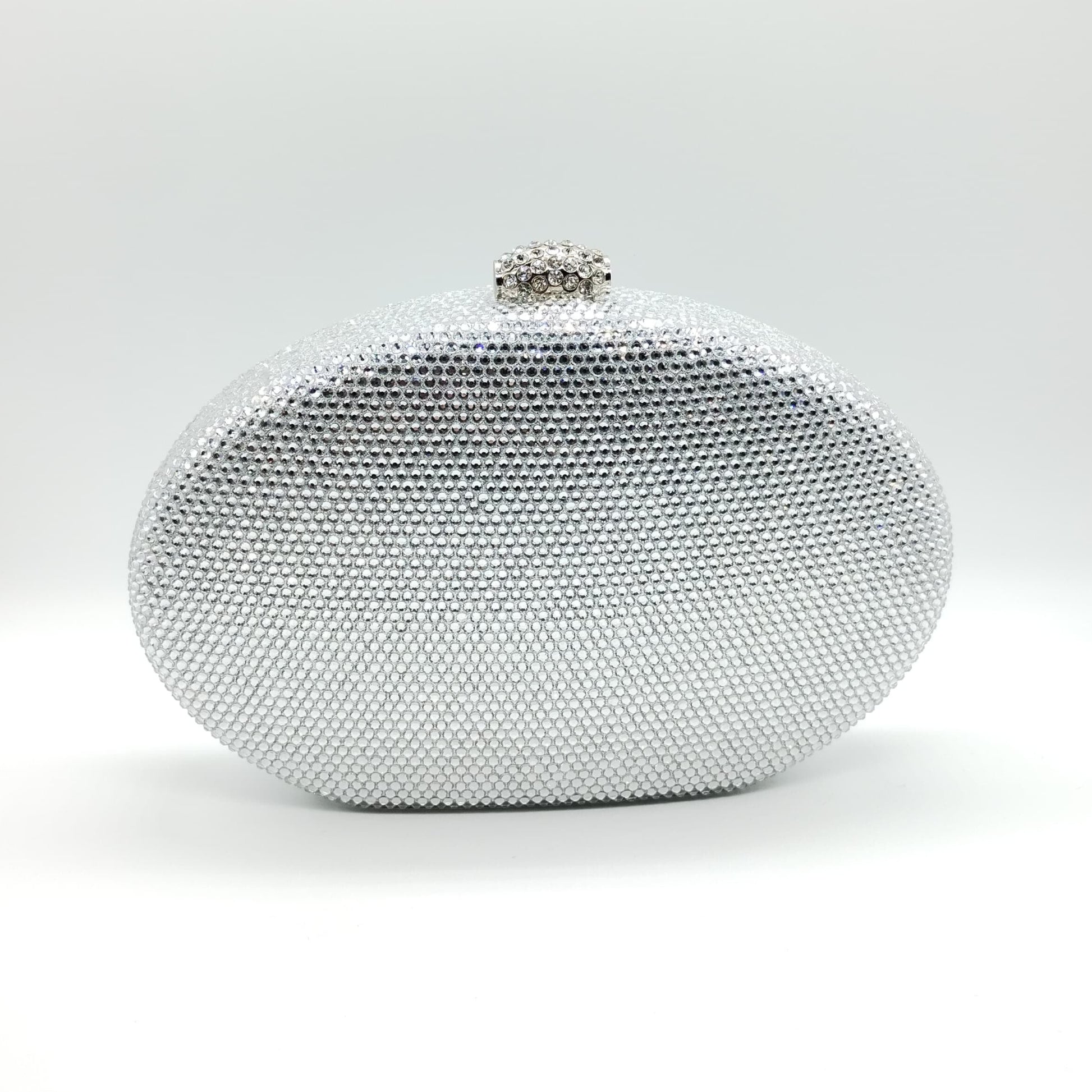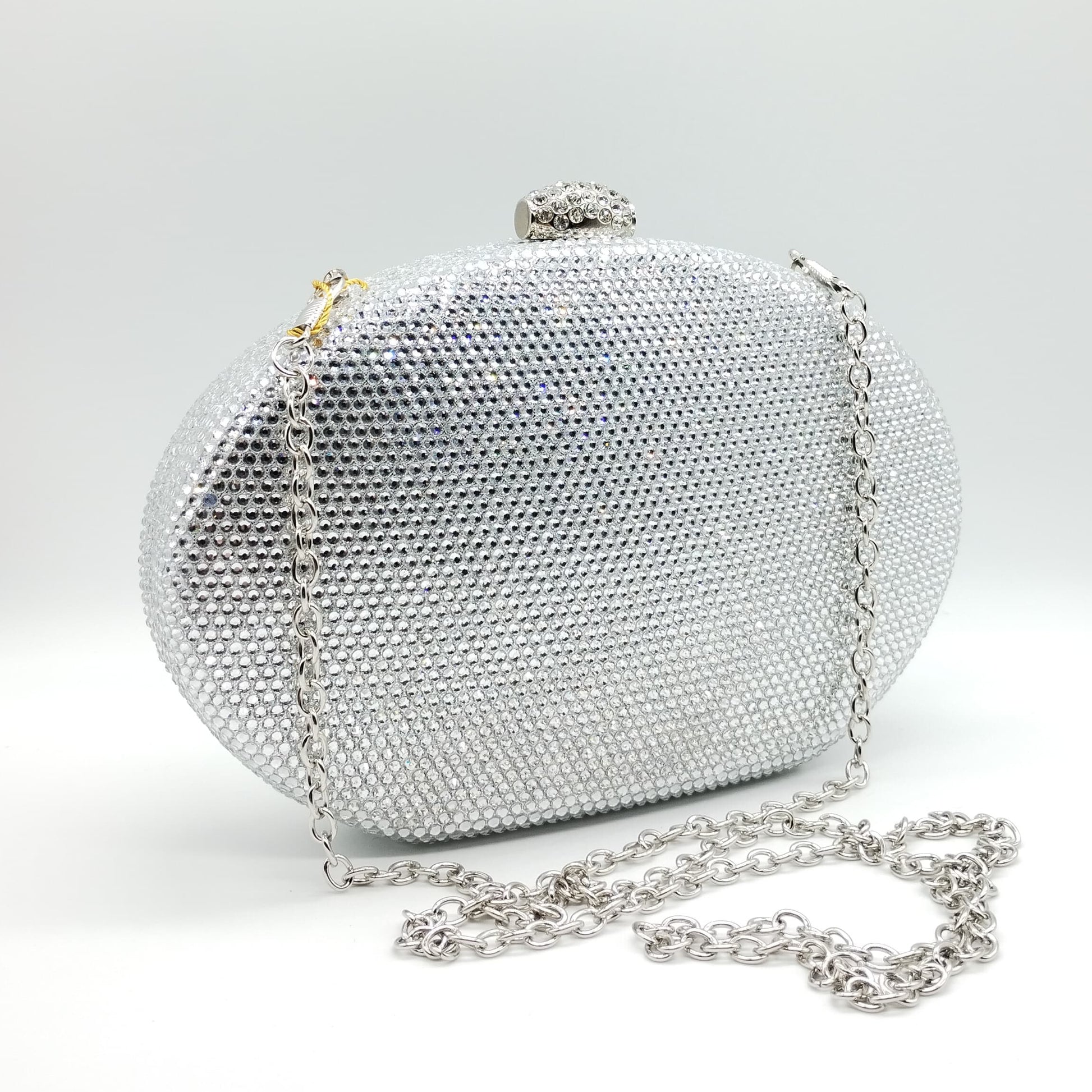 Borsetta da cerimonia rigida in strass color argento con tracolla interna removibile.