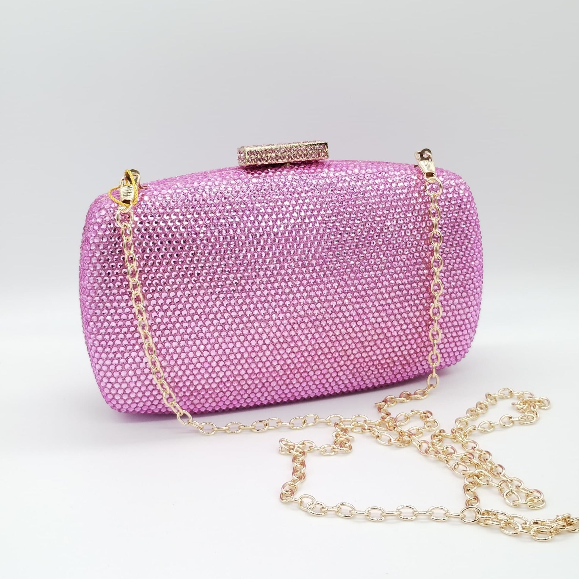 Borsetta da cerimonia rigida con strass color verdi e tracolla interna removibile.