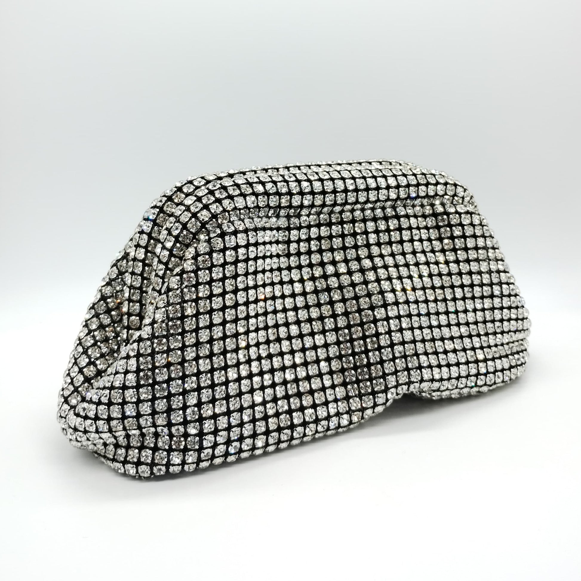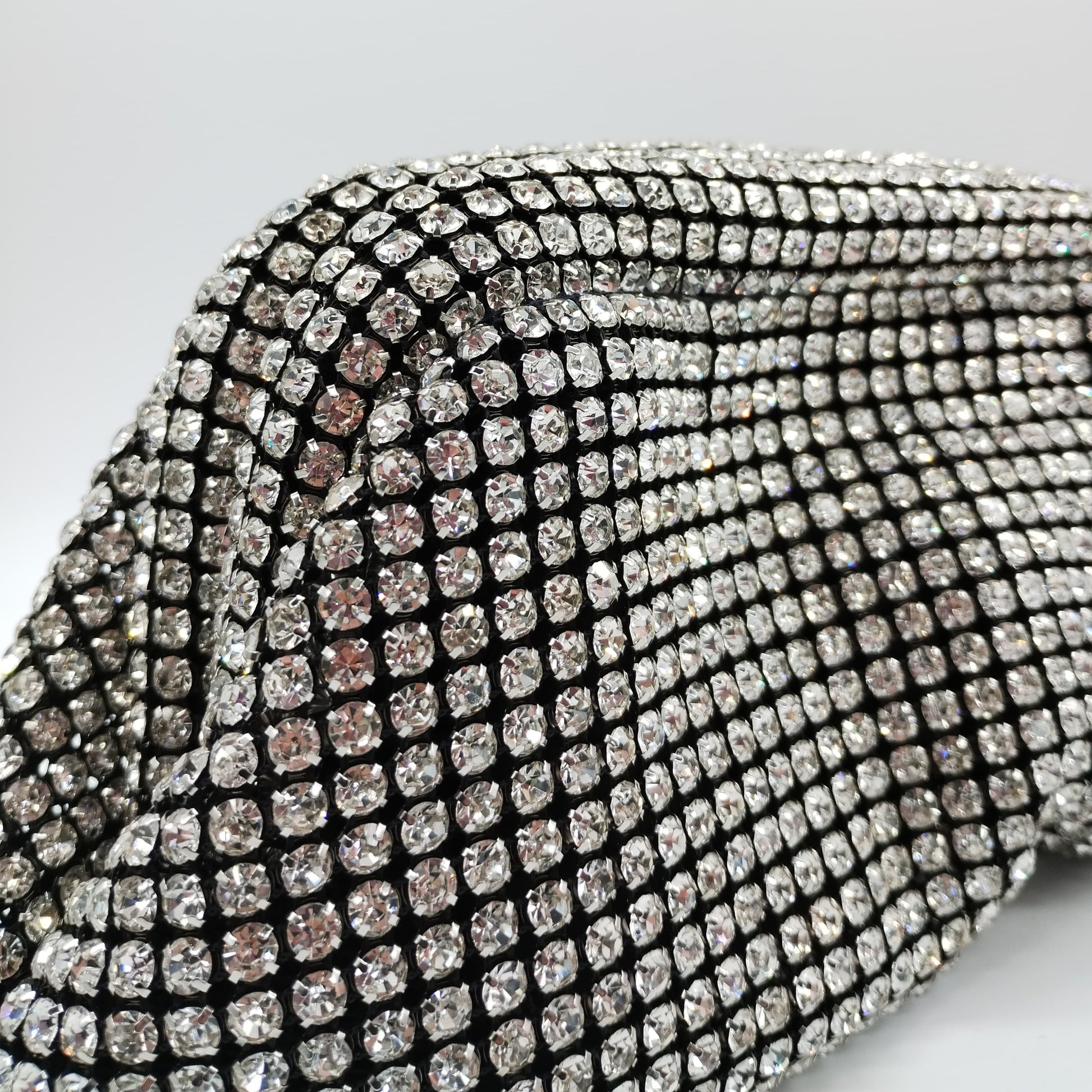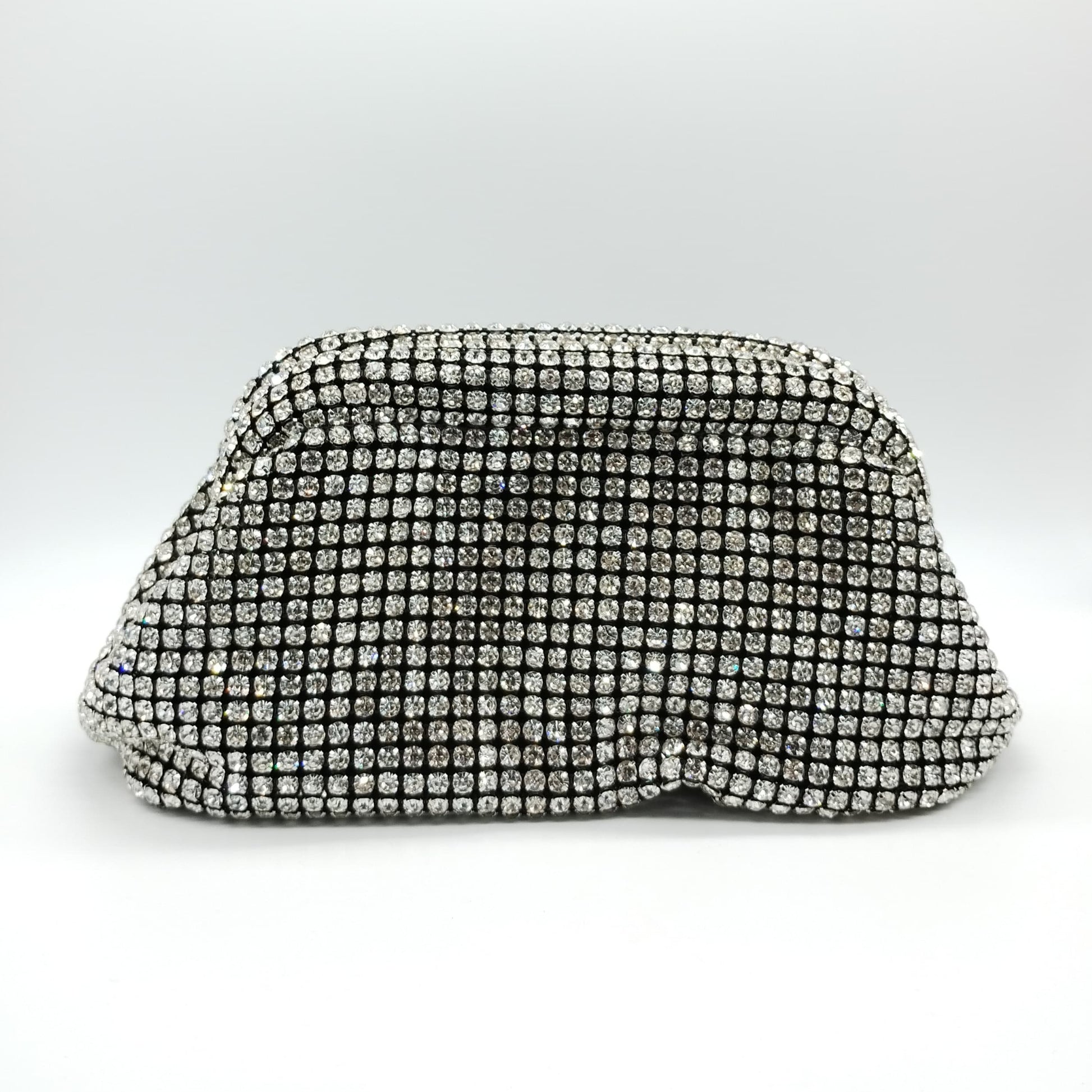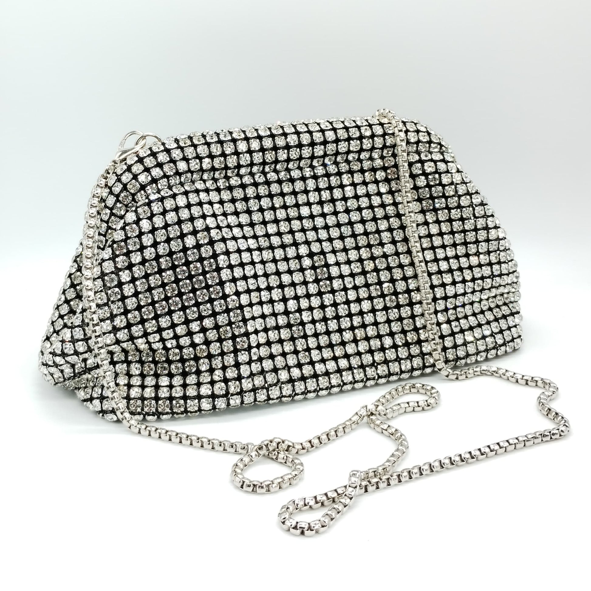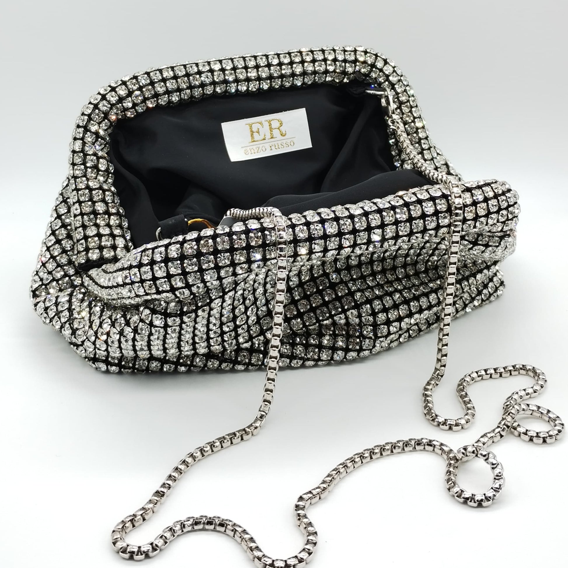 Borsetta da cerimonia morbida in tessuto nero con strass crystal e tracolla interna removibile