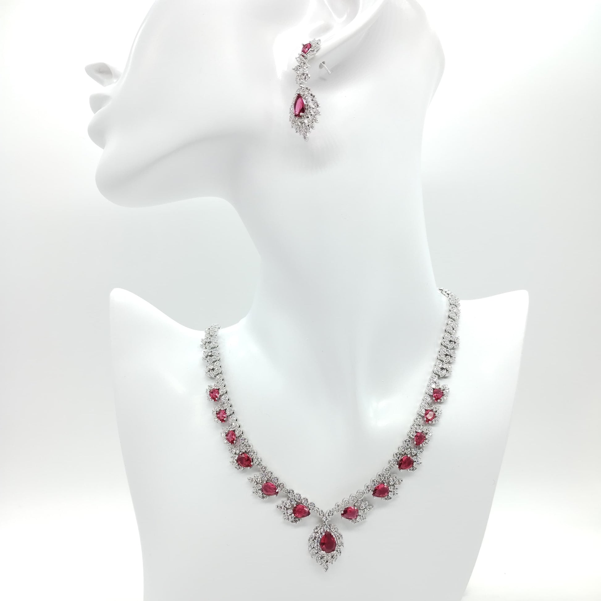 Parure di zirconi color crystal e rosso composta da collana e orecchini con rodiatura in argento