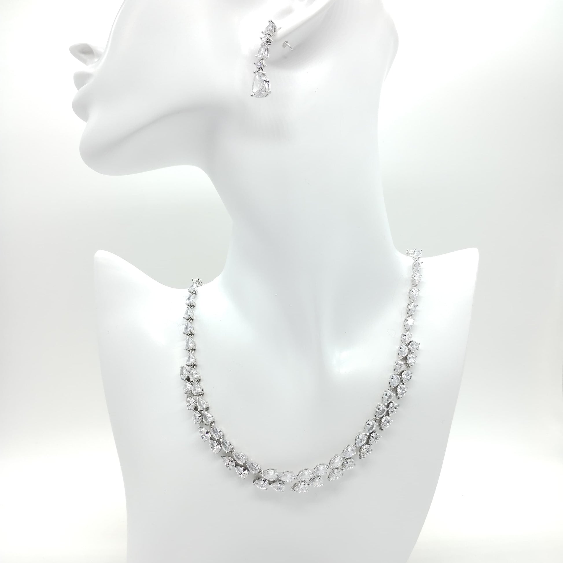 Parure di zirconi color crystal composta da collana e orecchini con rodiatura in argento