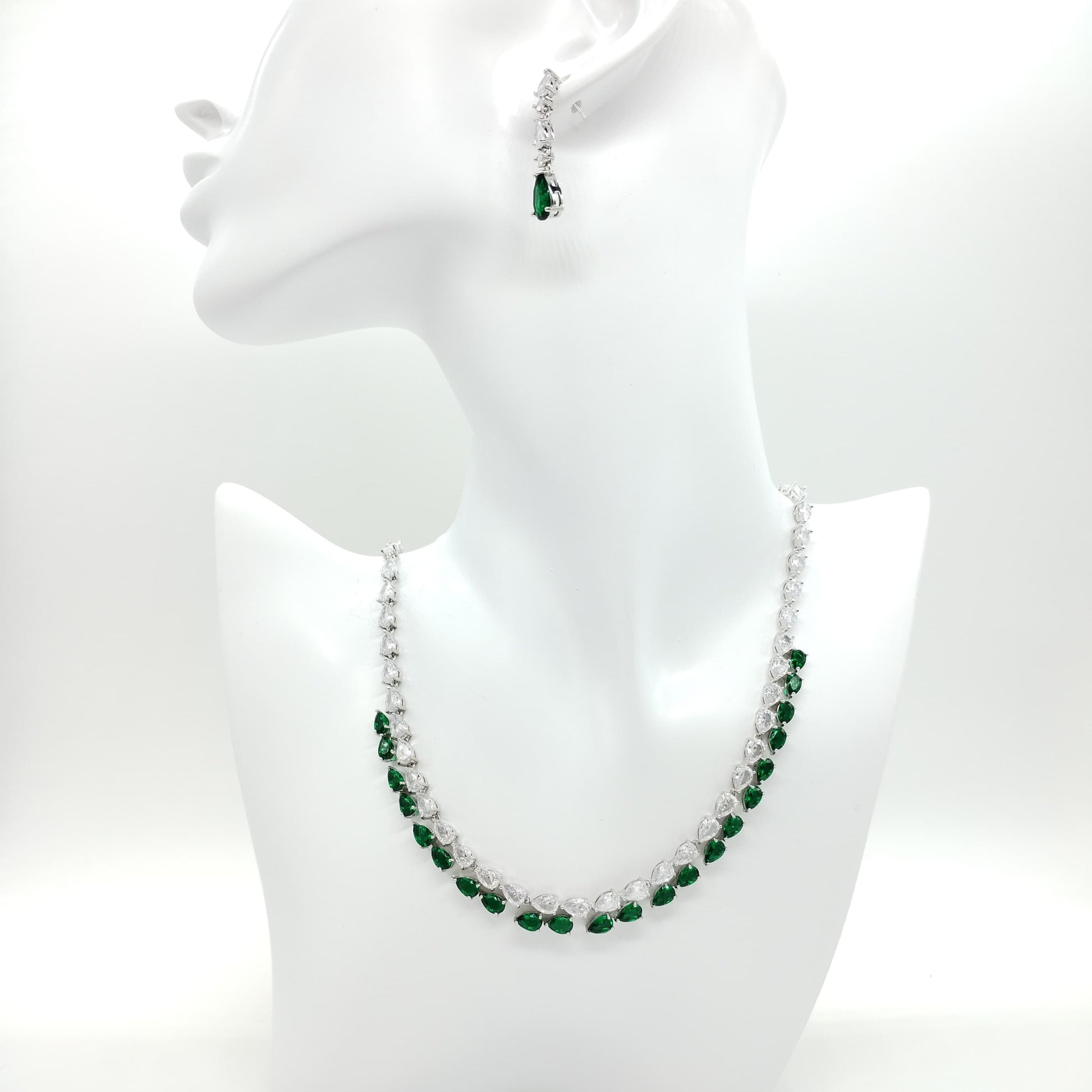 Parure di zirconi color crystal e verde composta da collana e orecchini con rodiatura in argento