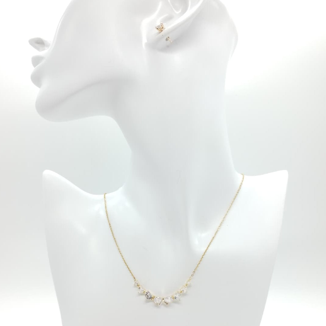 Parure di zirconi color crystal composta da collana e orecchini con rodiatura in oro