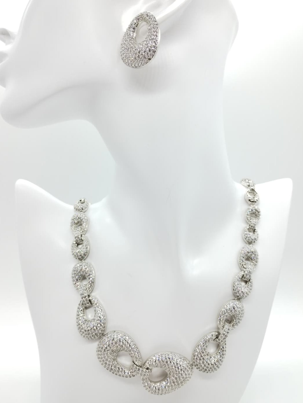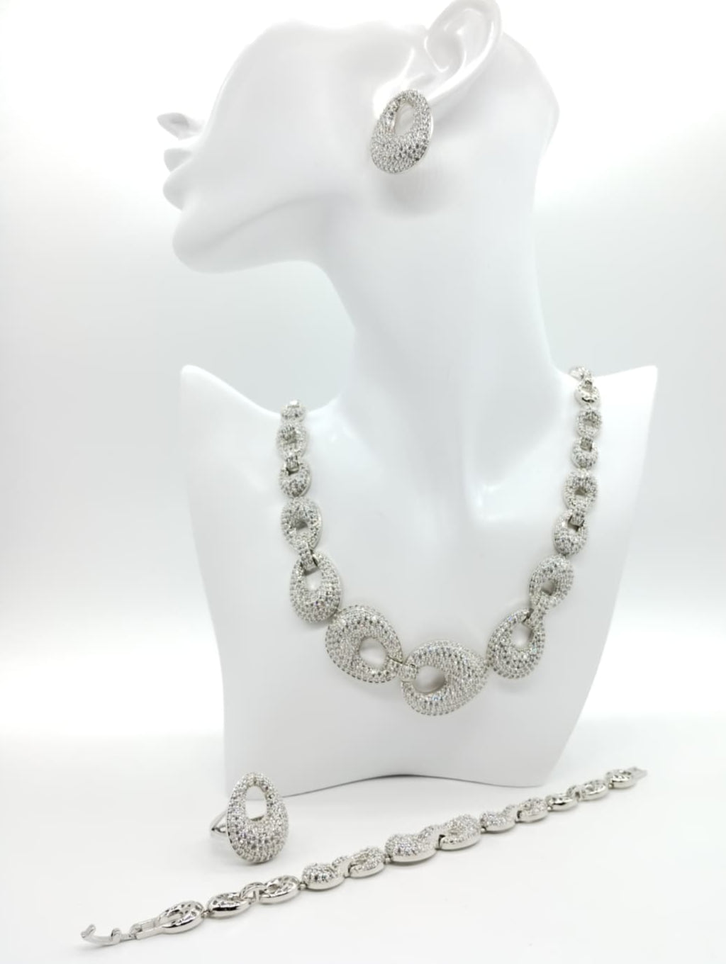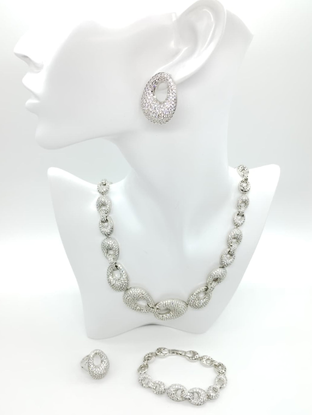 Parure di zirconi crystal composta da collana, orecchini, anello e bracciale con rodiatura in argento