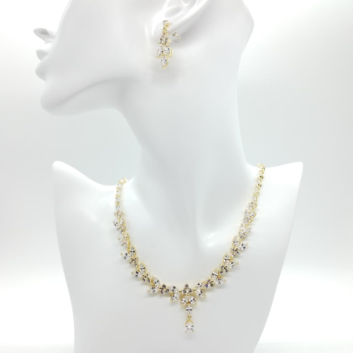 Parure di zirconi color crystal composta da collana e orecchini con rodiatura in oro