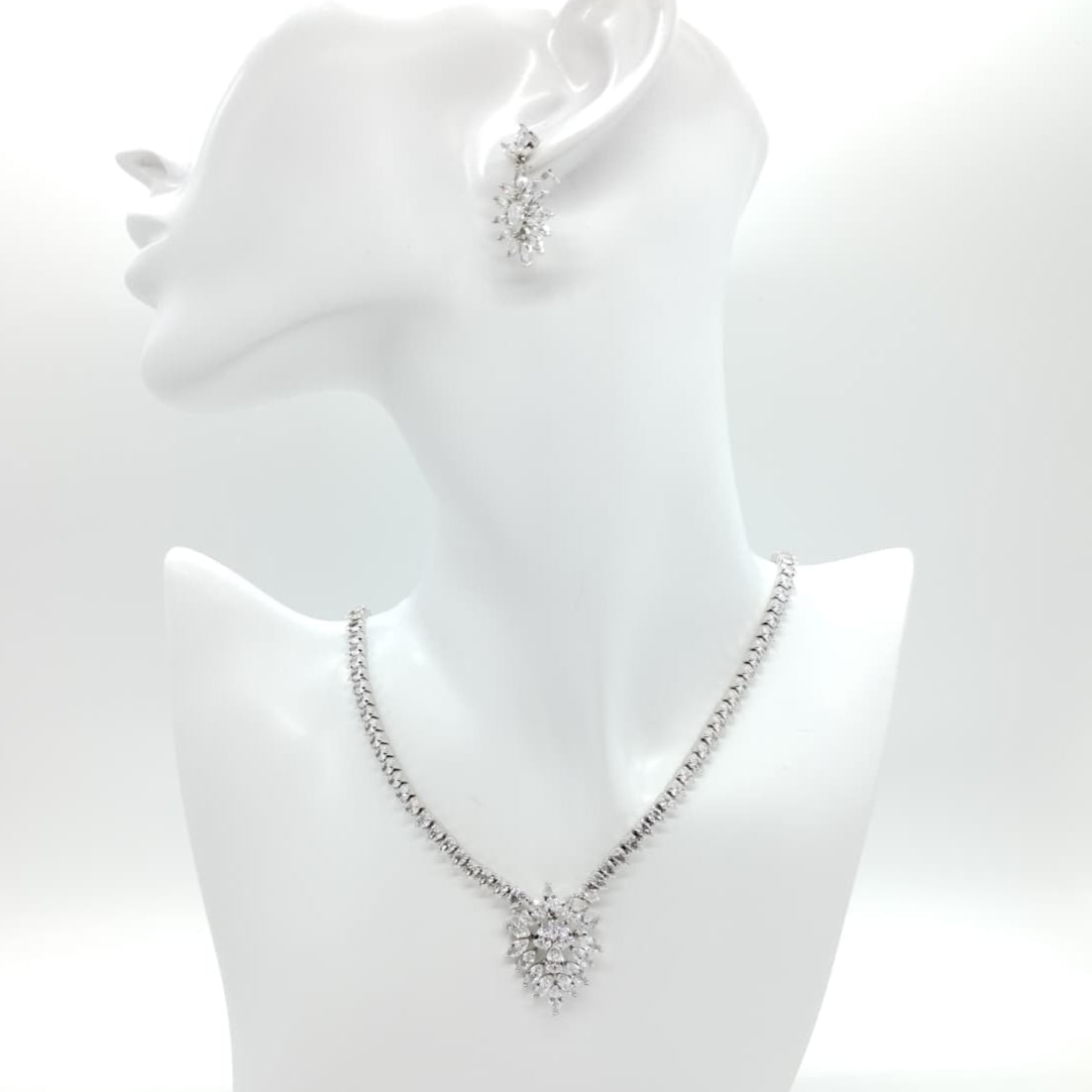 Parure di zirconi color crystal composta da collana e orecchini con rodiatura in argento