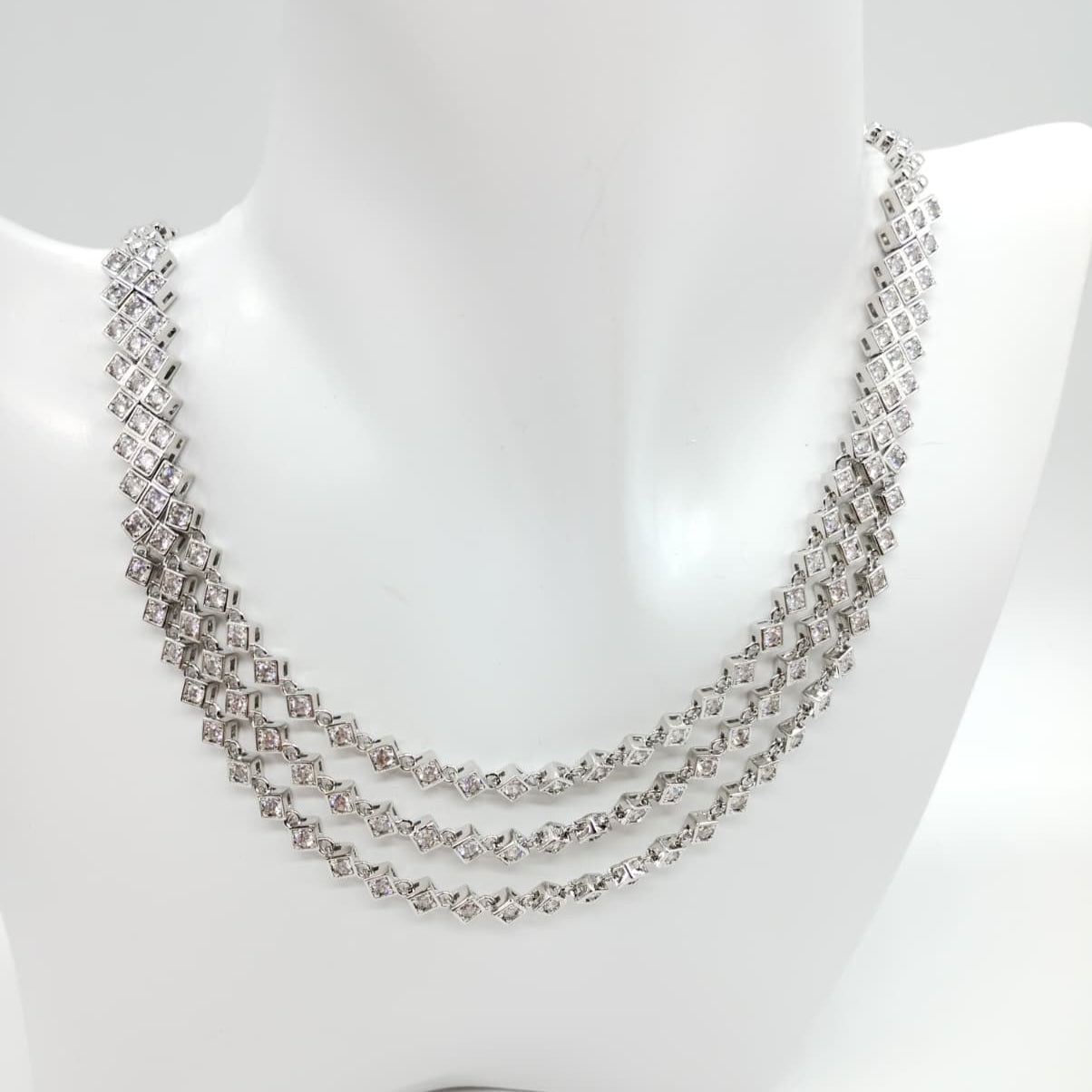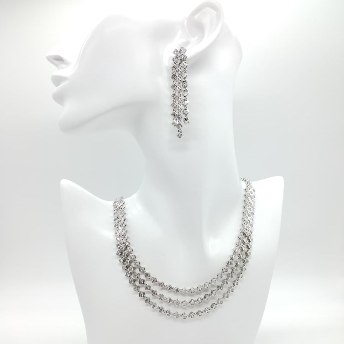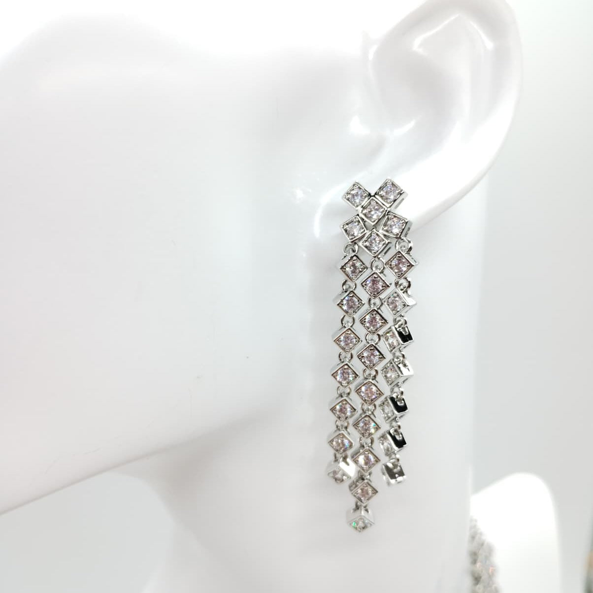 Parure di zirconi color crystal composta da collana e orecchini con rodiatura in argento