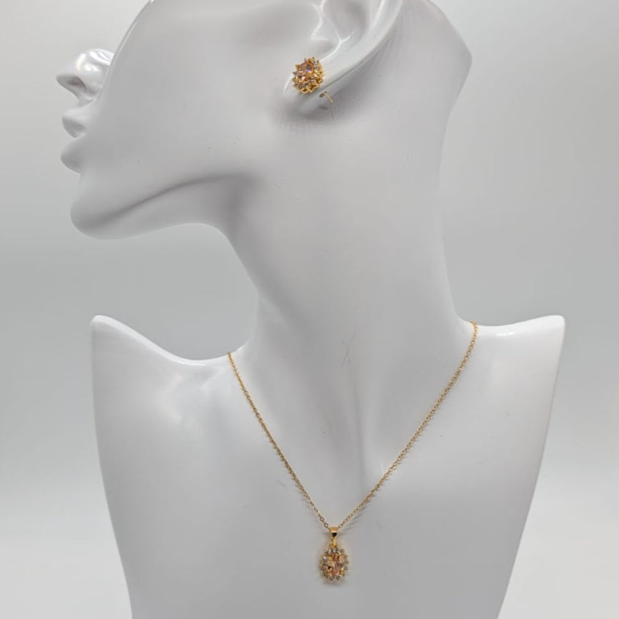 Parure di piccoli zirconi crystal con pietra ambra composta da collana e orecchini con rodiatura oro