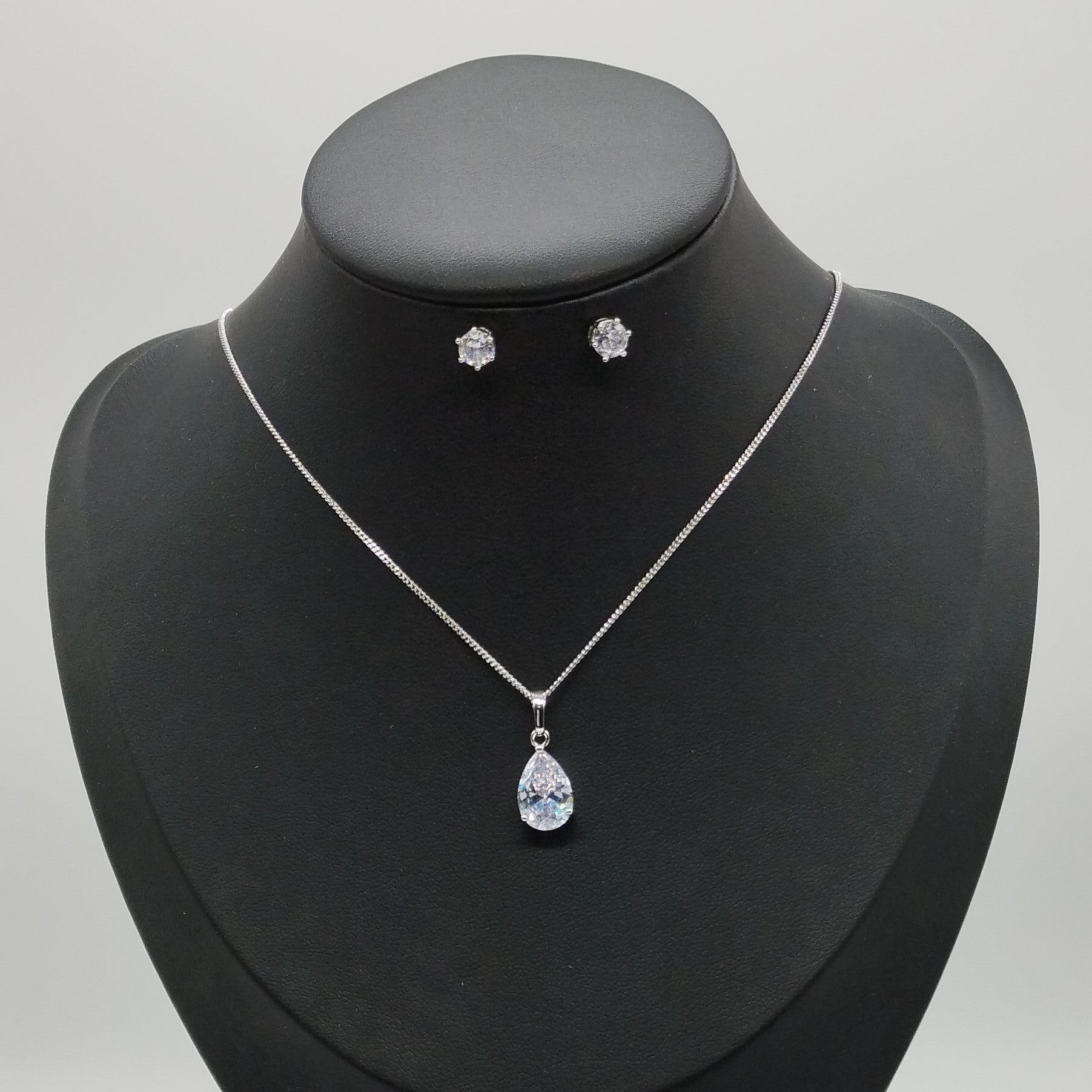 Parure di zirconi color crystal composta da collana e orecchini con rodiatura in argento