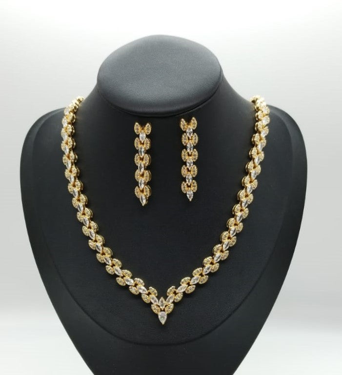 Parure di zirconi color crystal composta da collana e orecchini con rodiatura oro