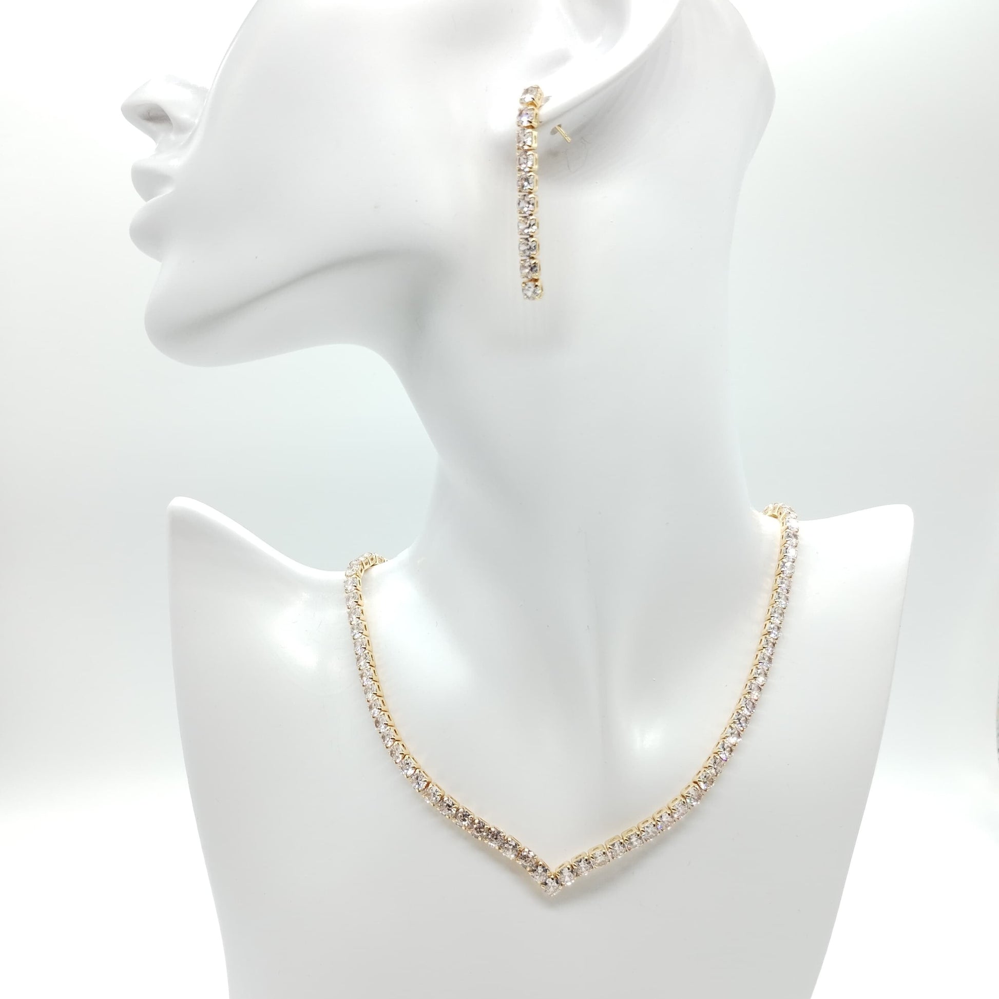 Parure di zirconi color crystal composta da collana e orecchini con rodiatura in oro