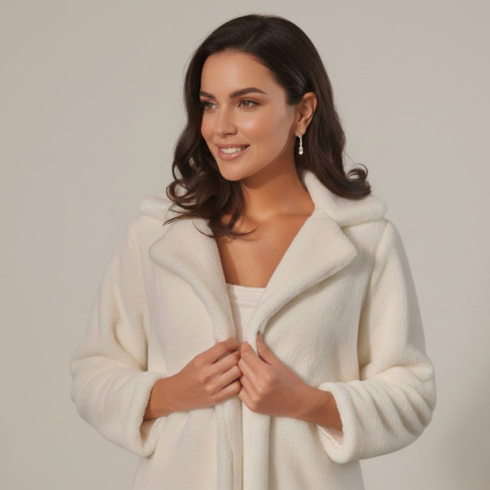 Giacchino da sposa in pelliccia color bianco senza chiusura