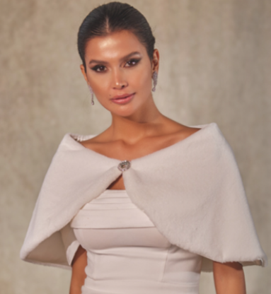 Coprispalle da sposa in pelliccia color bianco con chiusura strass