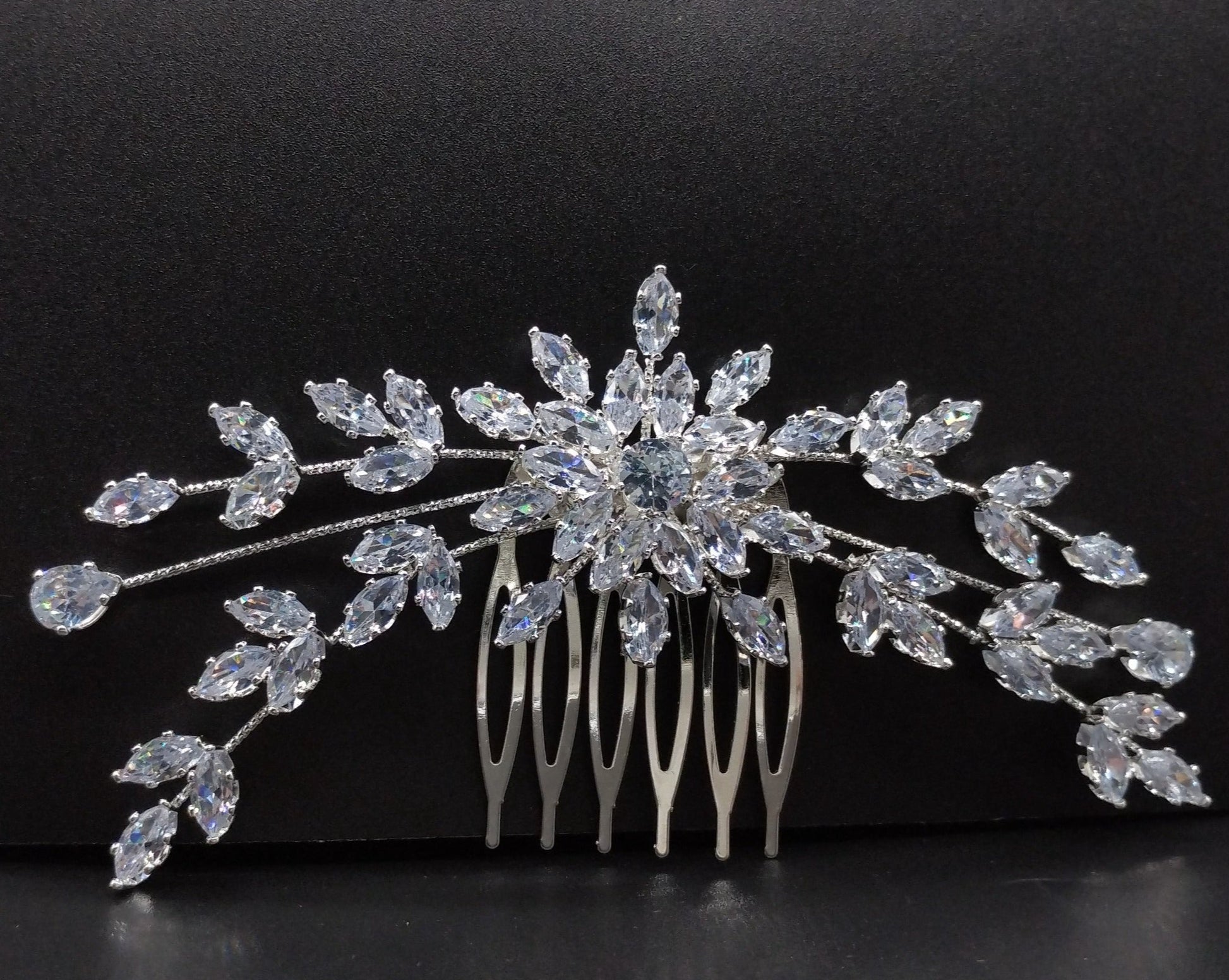 Pettinino per acconciatura sposa color argento con strass crystal
