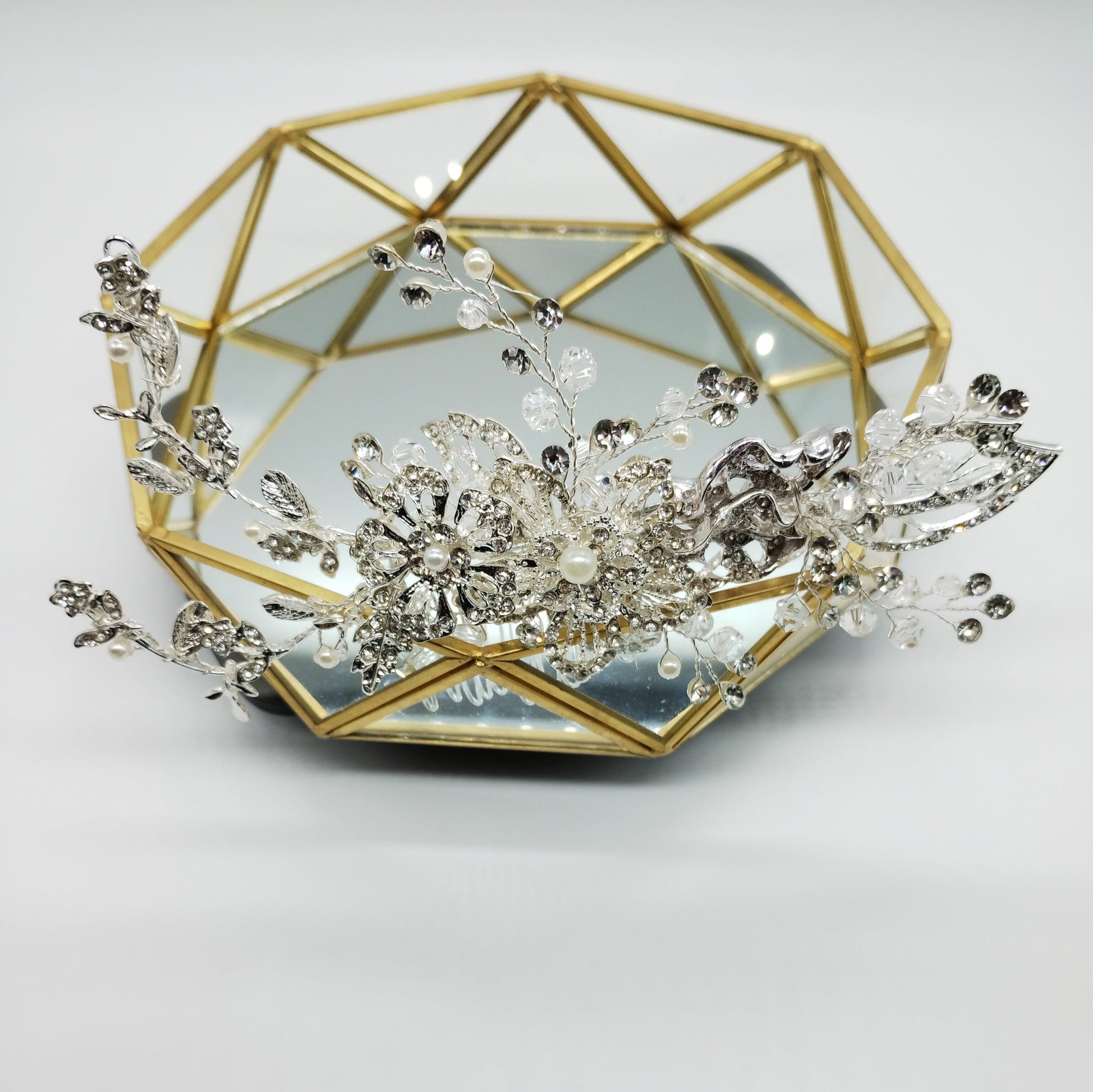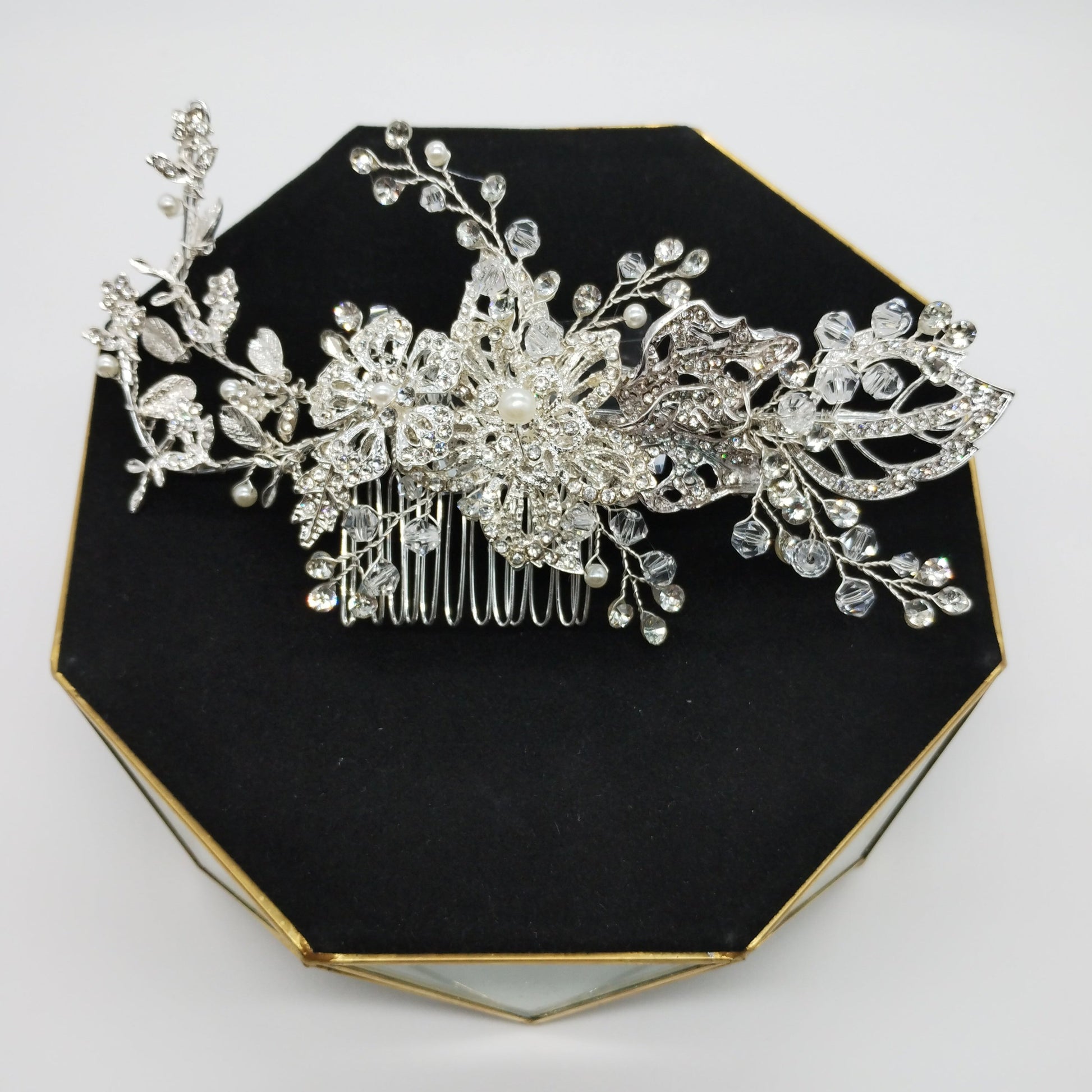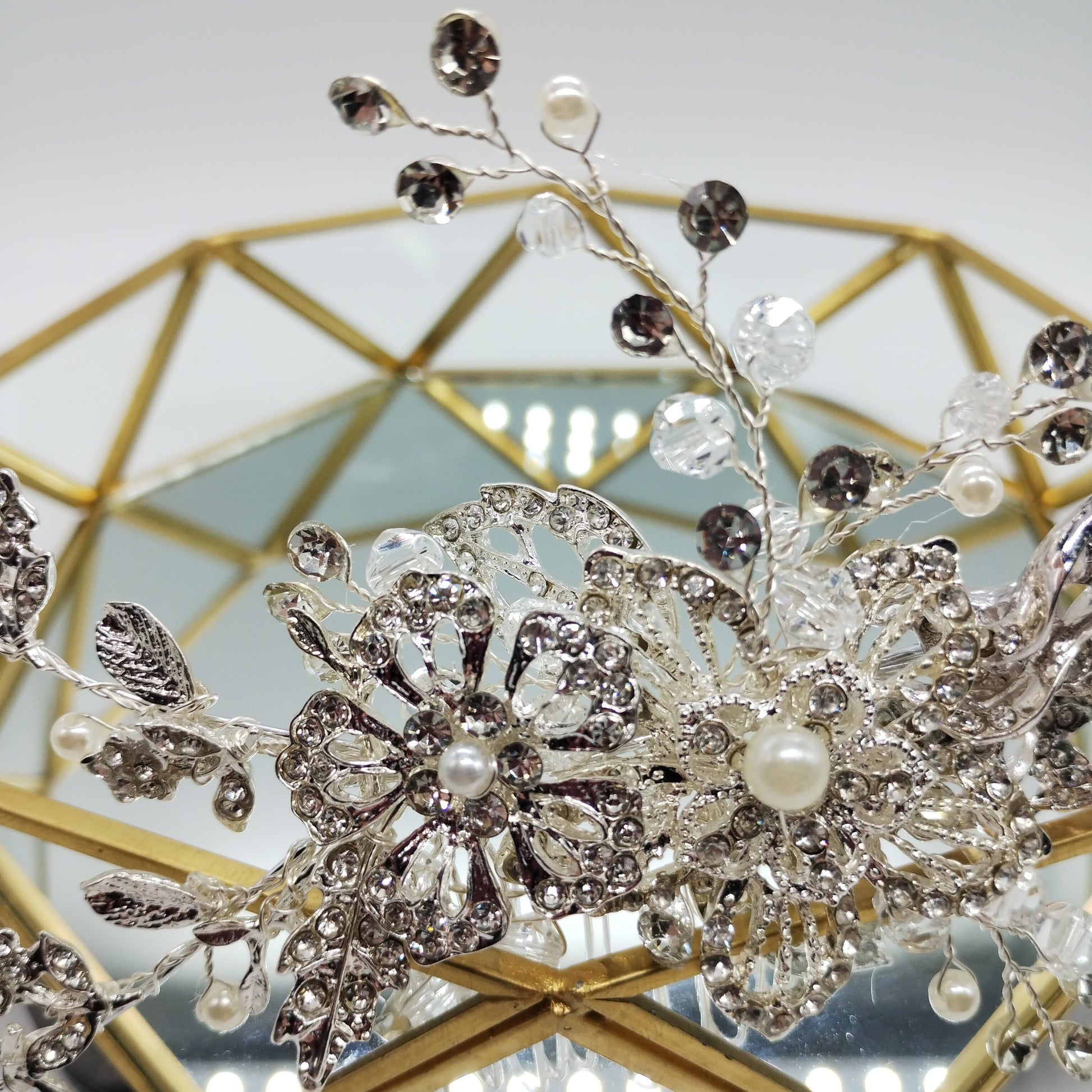 Pettinino per acconciatura sposa color argento con strass e cristalli
