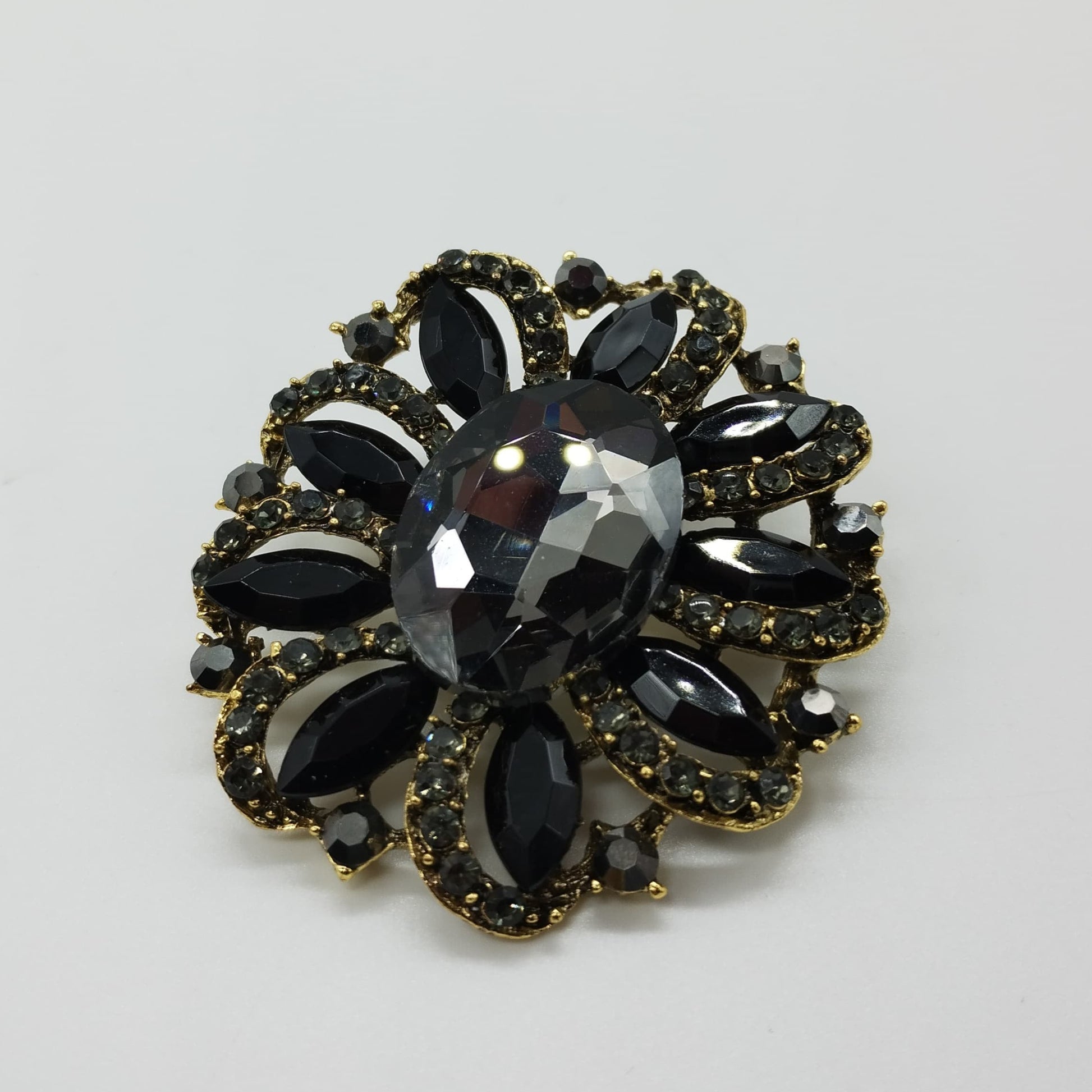 Spilla da cerimonia con zirconi color nero e rodiatura in oro