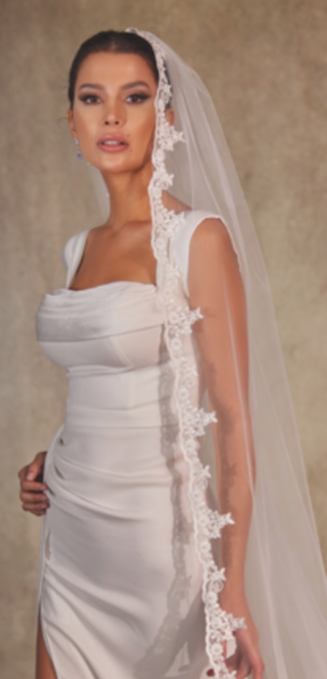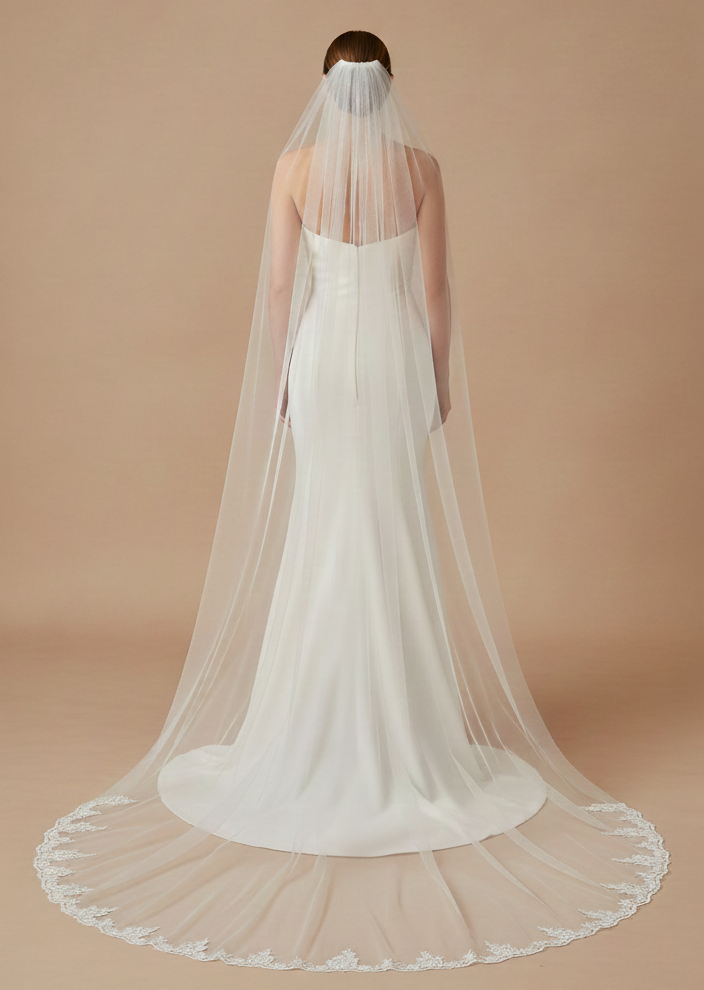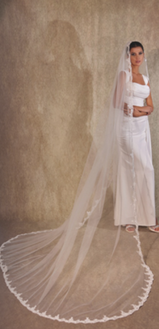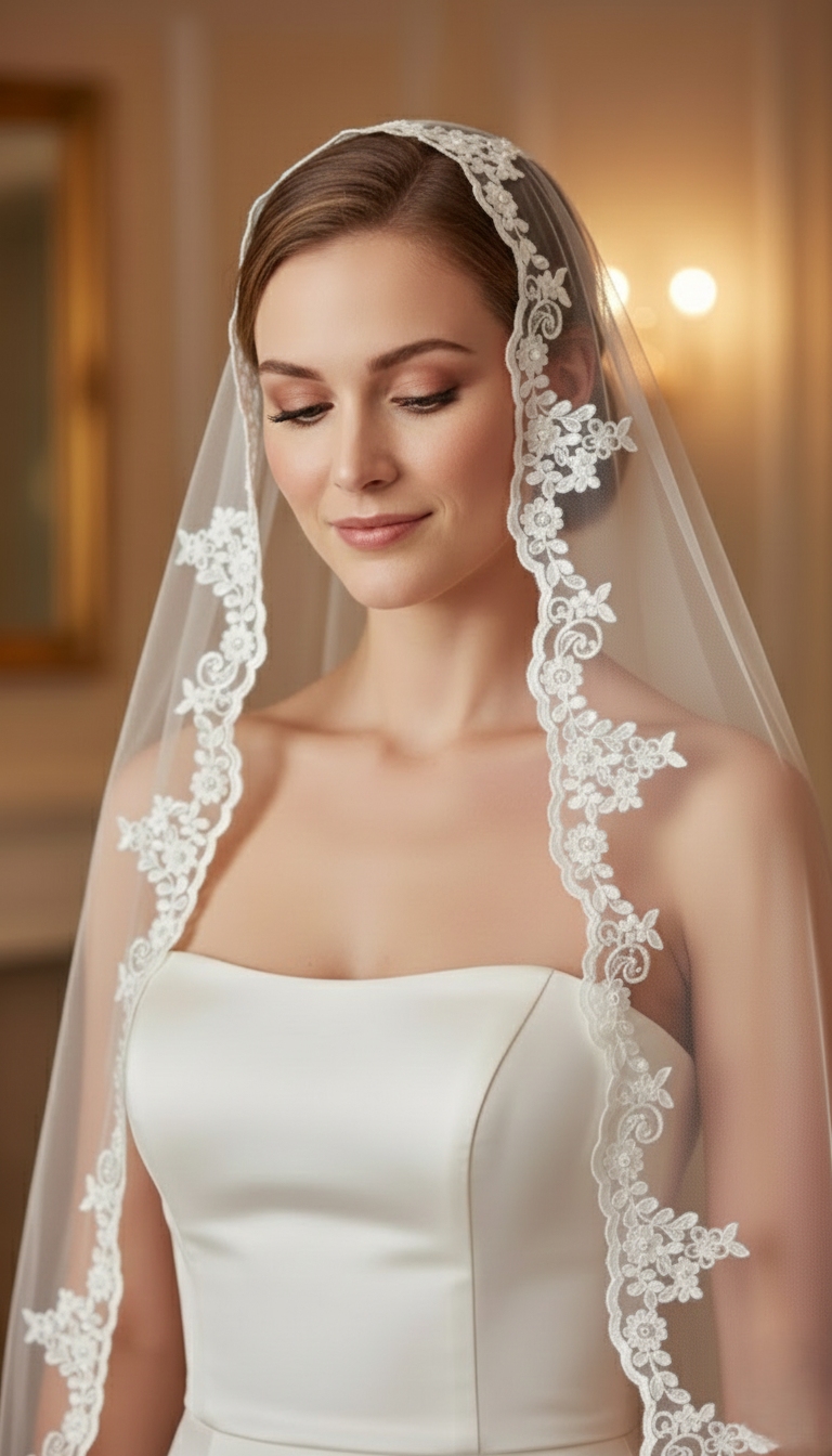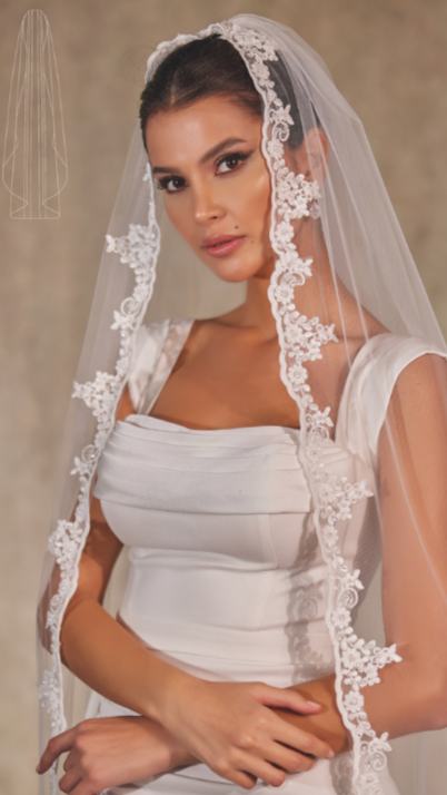 Velo sposa in tulle bianco con decorazioni pizzo sul bordo