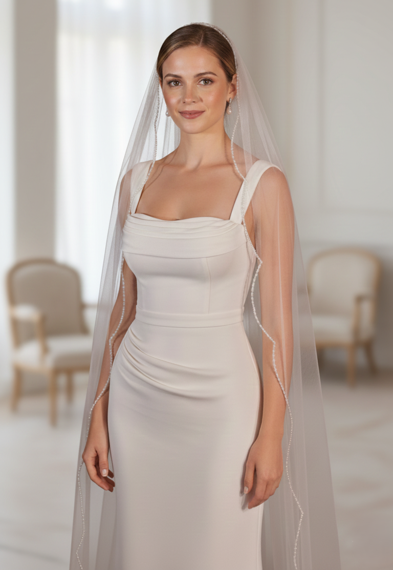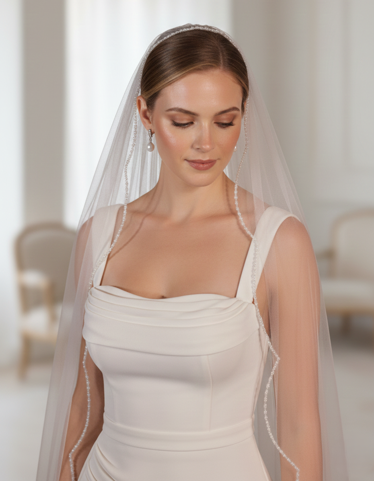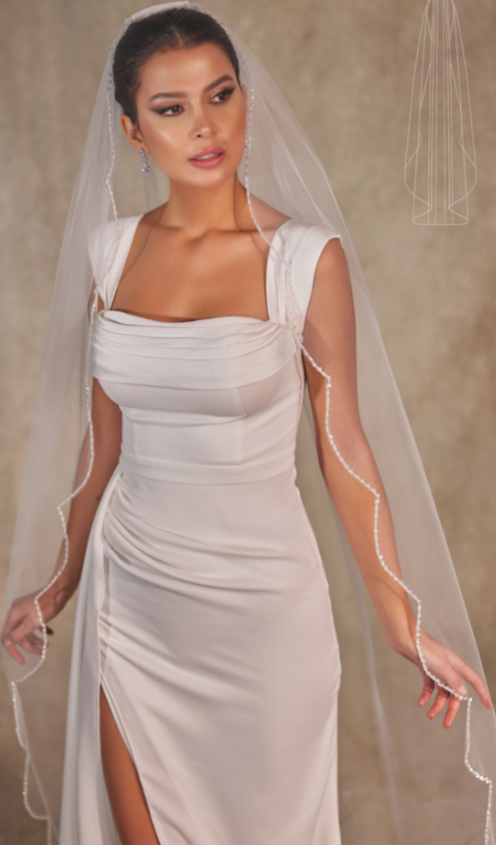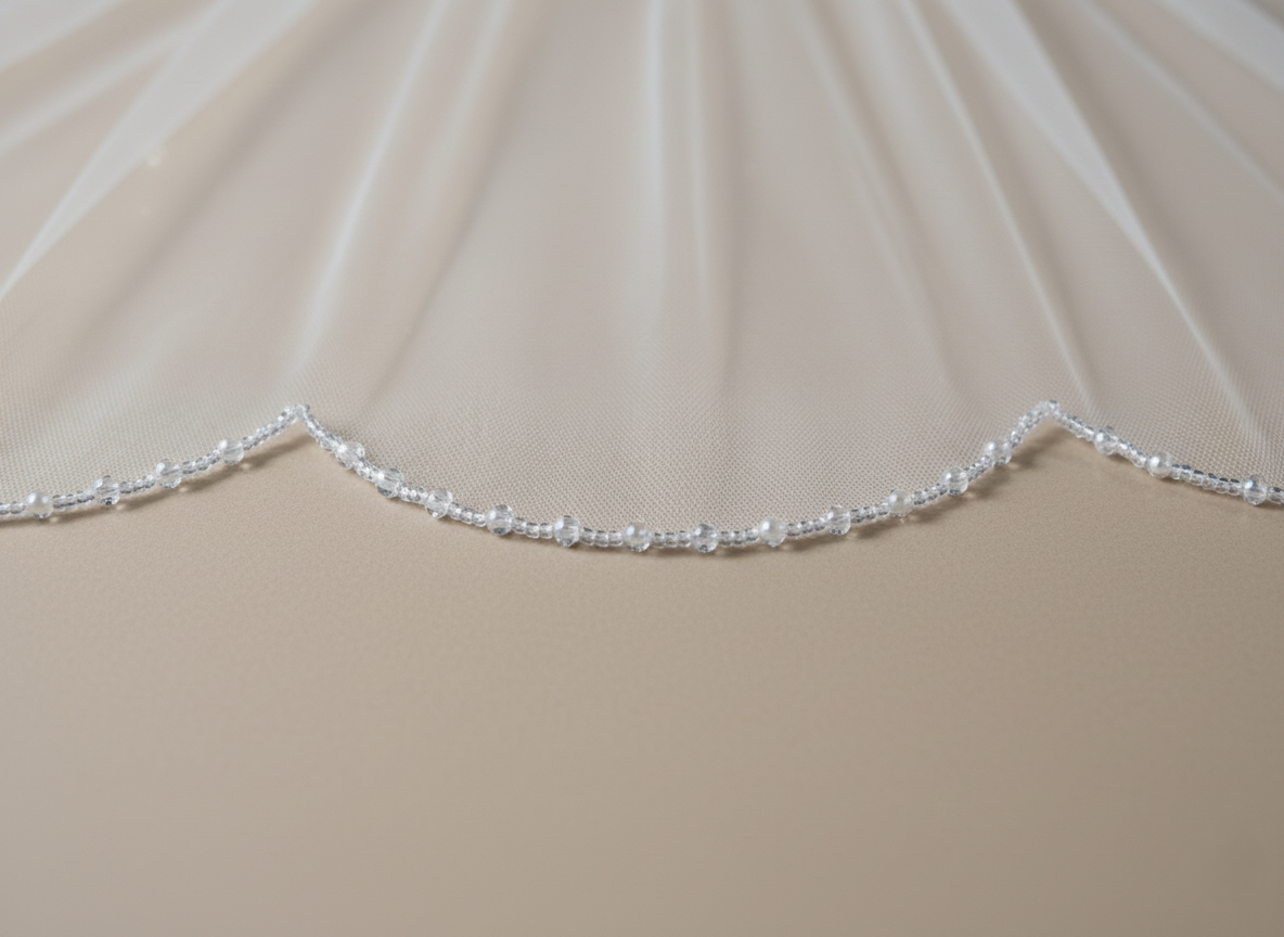 Velo sposa in tulle bianco con decorazioni strass sul bordo