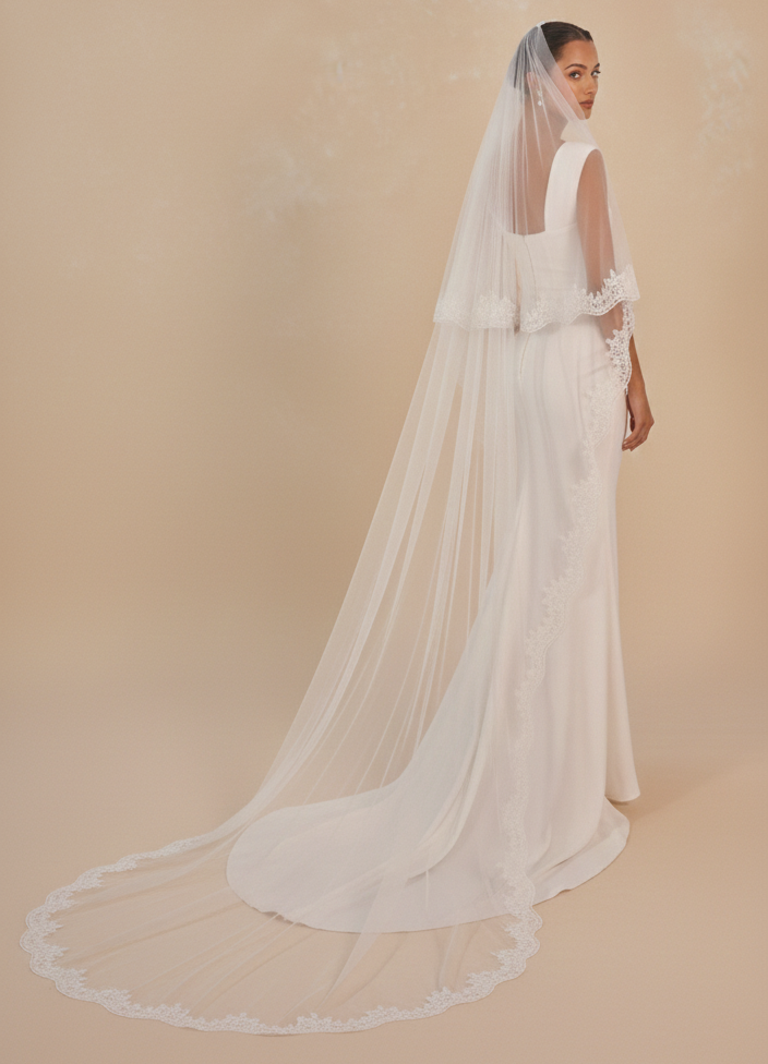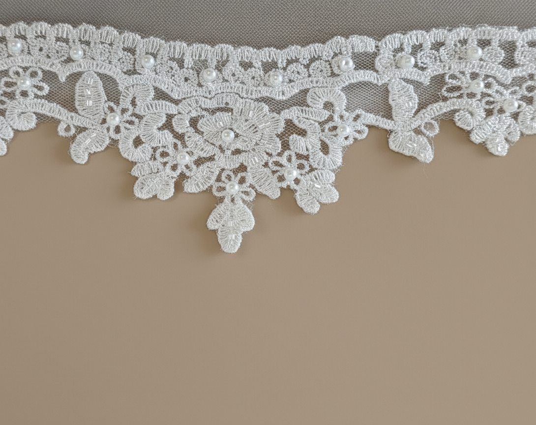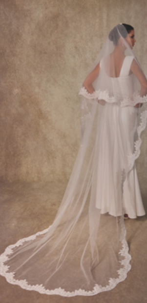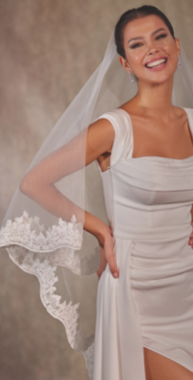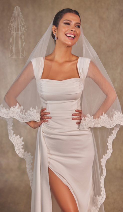 Velo sposa in tulle bianco con decorazioni pizzo sul bordo