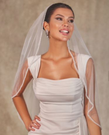 Velo sposa in tulle bianco con decorazioni strass sul bordo