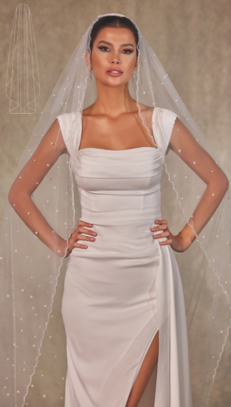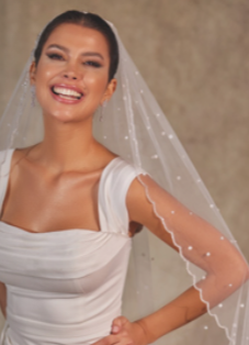 Velo sposa in tulle bianco con e decorazioni perle