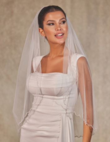 Velo sposa in tulle bianco con e decorazioni strass sul bordo