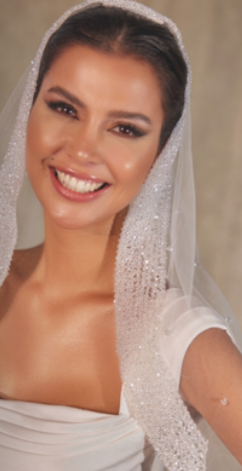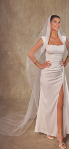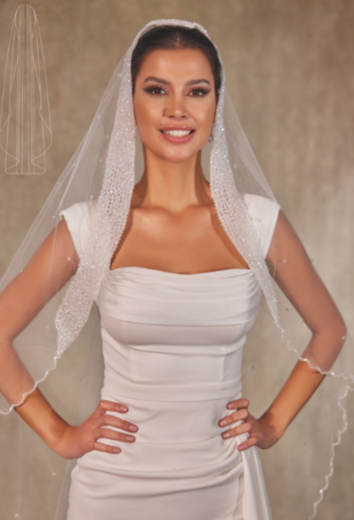 Velo sposa in tulle bianco con decorazione strass alta sul bordo
