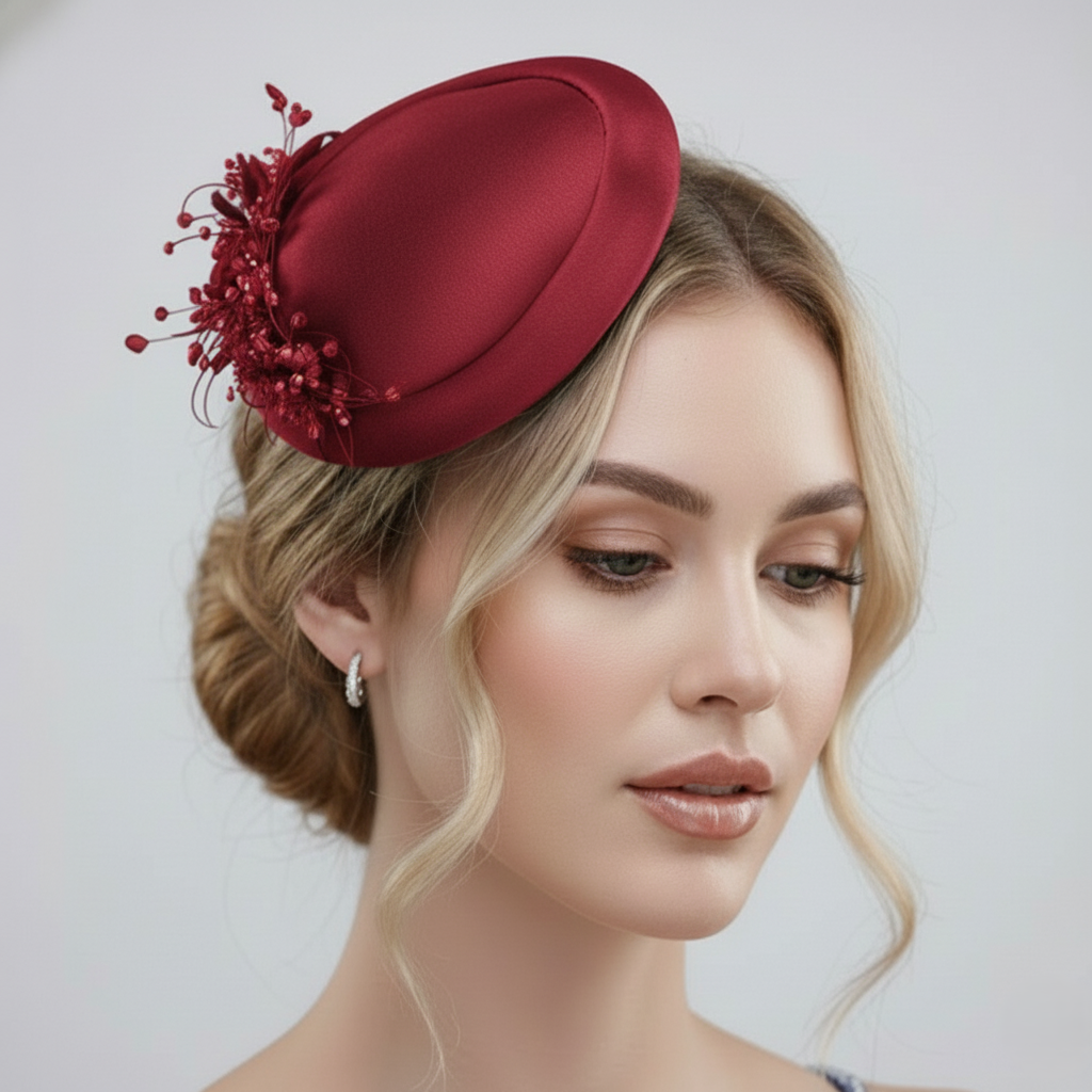 Veletta sposa con retina e decorazioni strass, colore rosso bordeaux