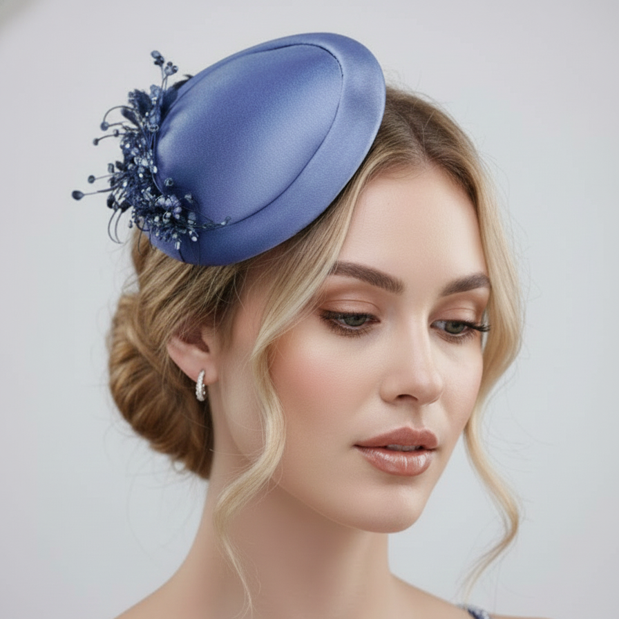 Veletta da cerimonia con decorazioni strass, colore bluette