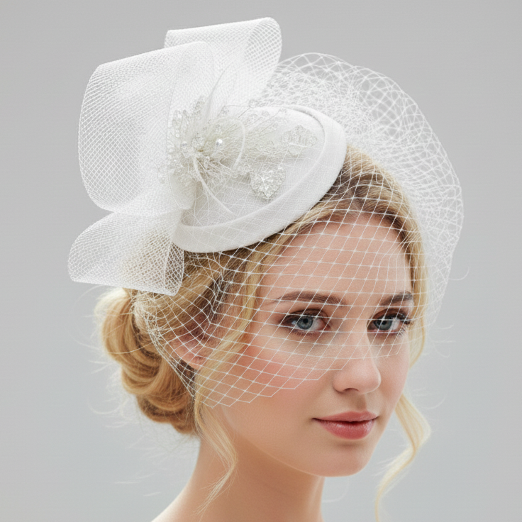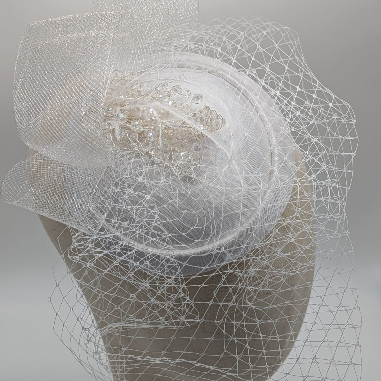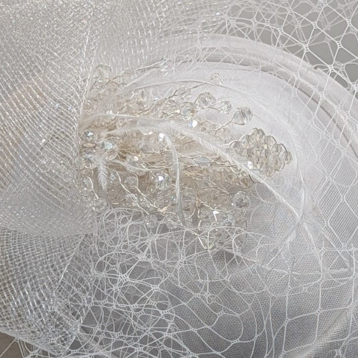 Veletta sposa con retina e decorazioni strass, colore bianco