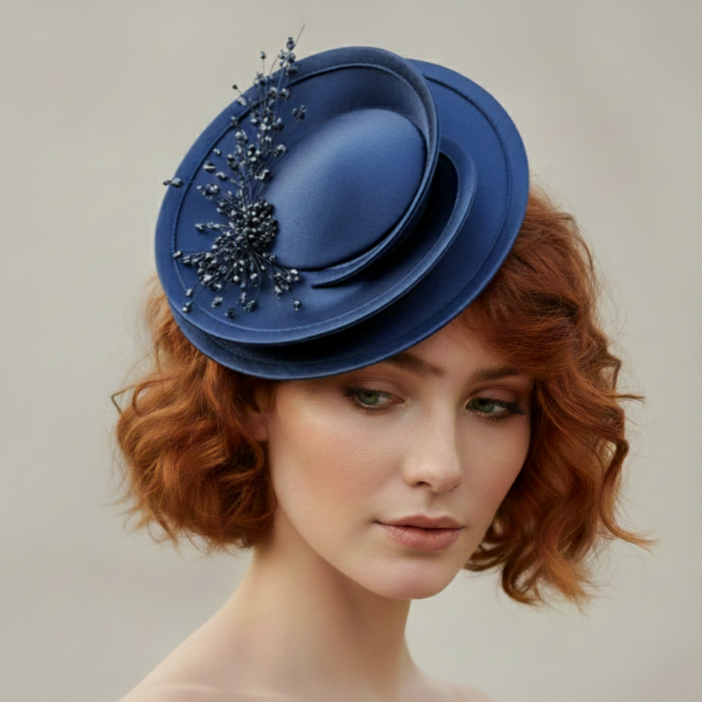 Veletta da cerimonia con decorazioni strass, colore bluette