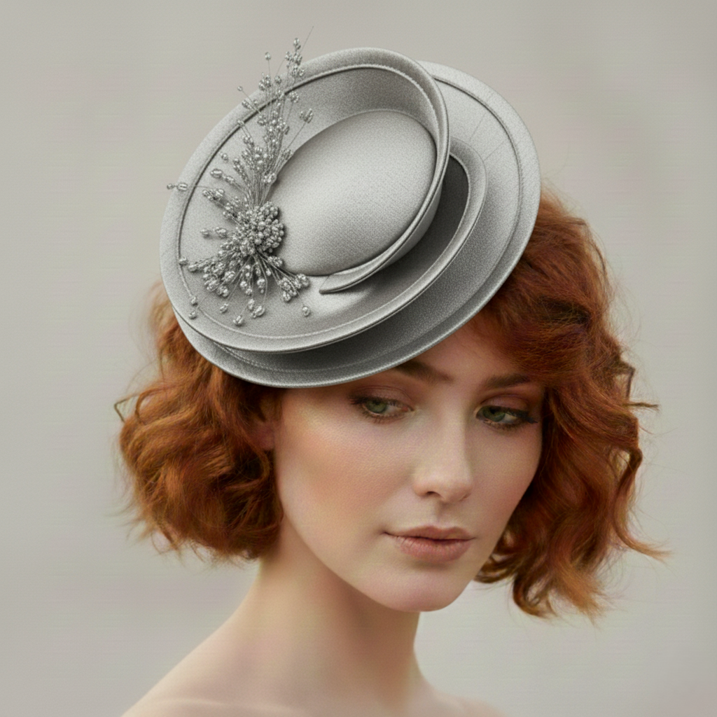 Veletta da cerimonia con decorazioni strass, colore grigio/argento